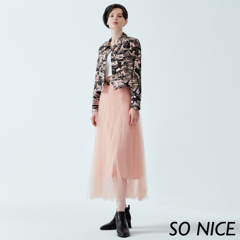 SO NICE【特惠】迷彩腰頭網紗裙【58243001】粉紅,38(M)|粉紅,40(L)|粉紅,42(XL)|粉紅,34(XS)|粉紅,36(S)SO NICE 官方旗艦店
