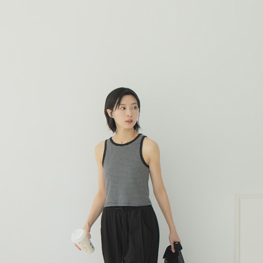 QUEENSHOP_ S 女裝 經典撞色條紋削肩背心 三色售 現+預 【01150467】黑|杏|水藍Tanks & CamisolesQUEENSHOP