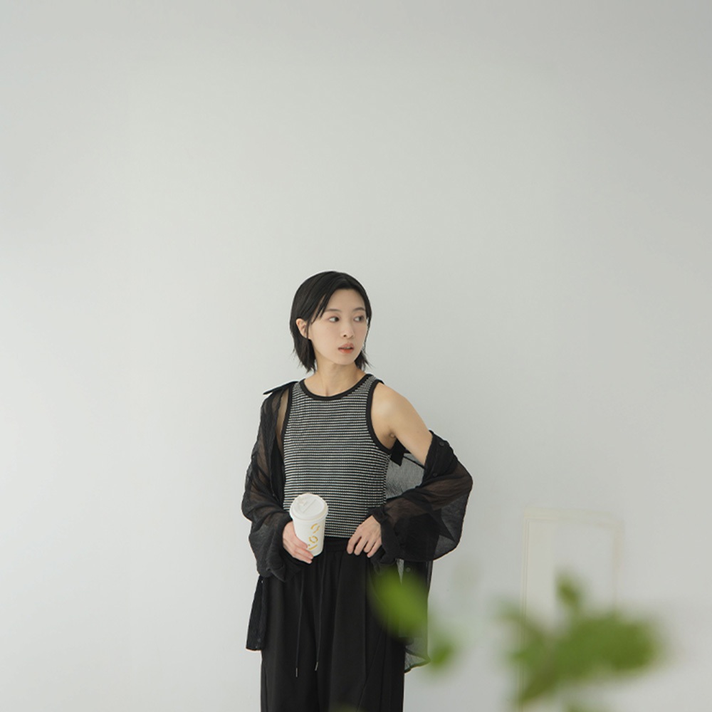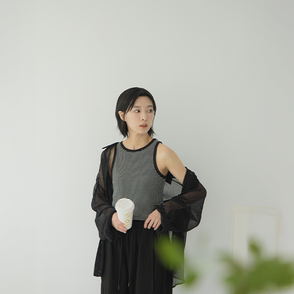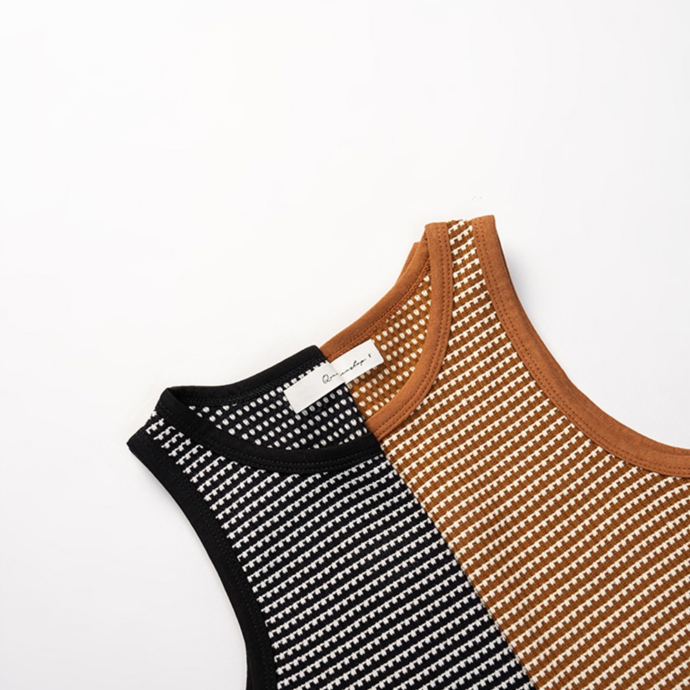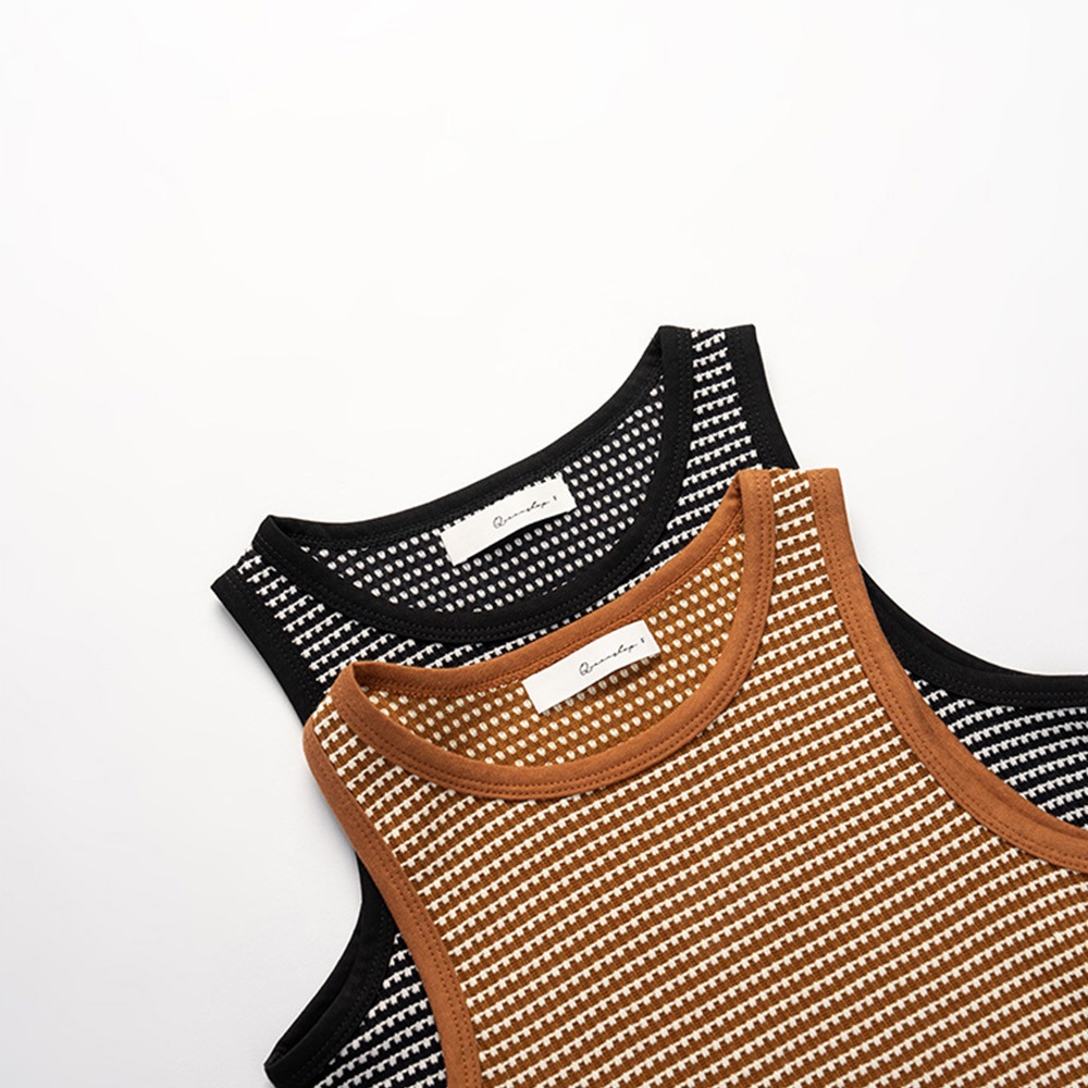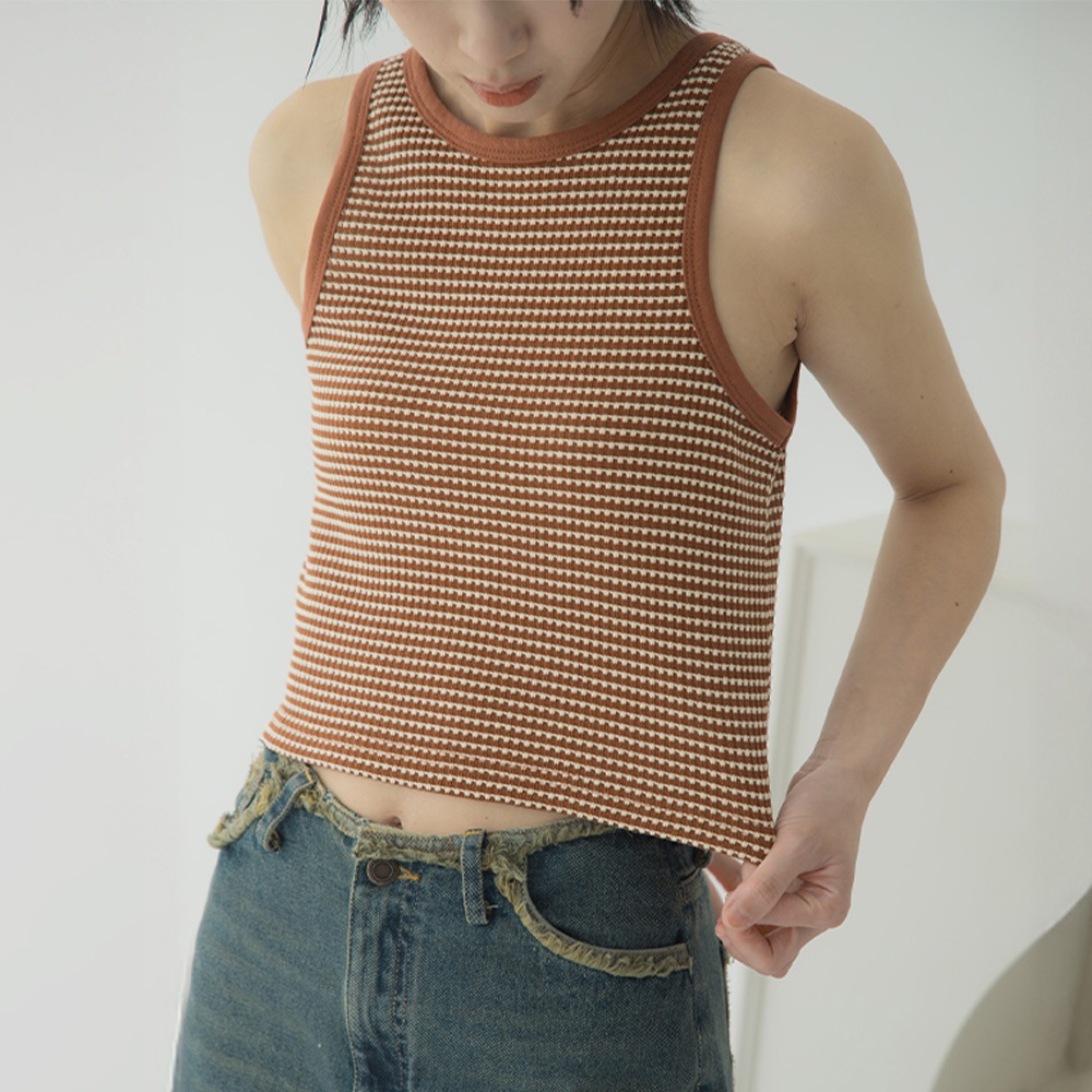 QUEENSHOP_ S 女裝 立體橫條紋緹花造型削肩背心 兩色售 現+預 【01150463】黑|咖啡Tanks & CamisolesQUEENSHOP