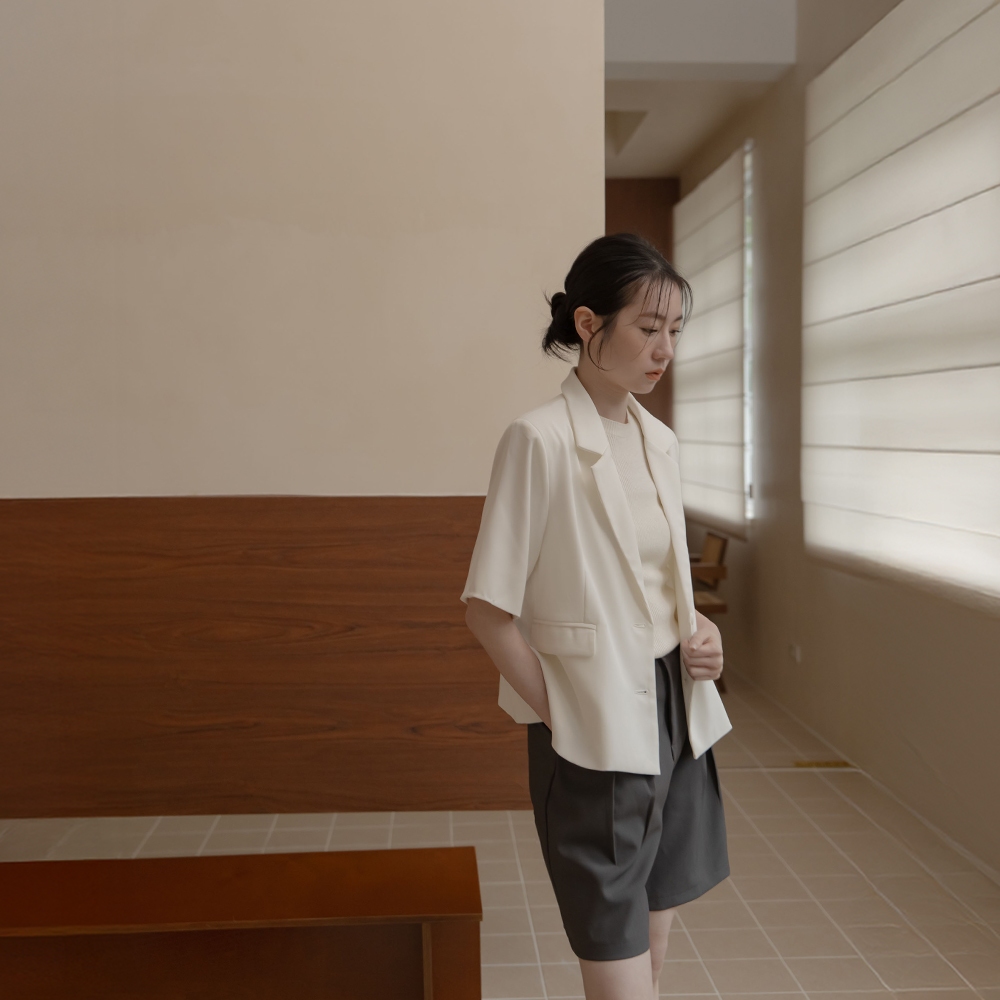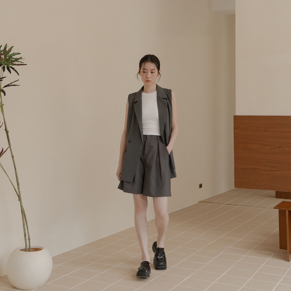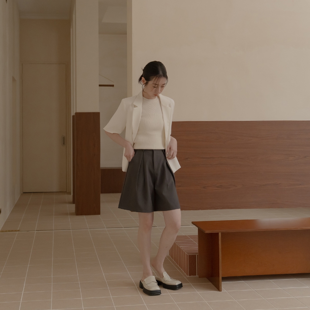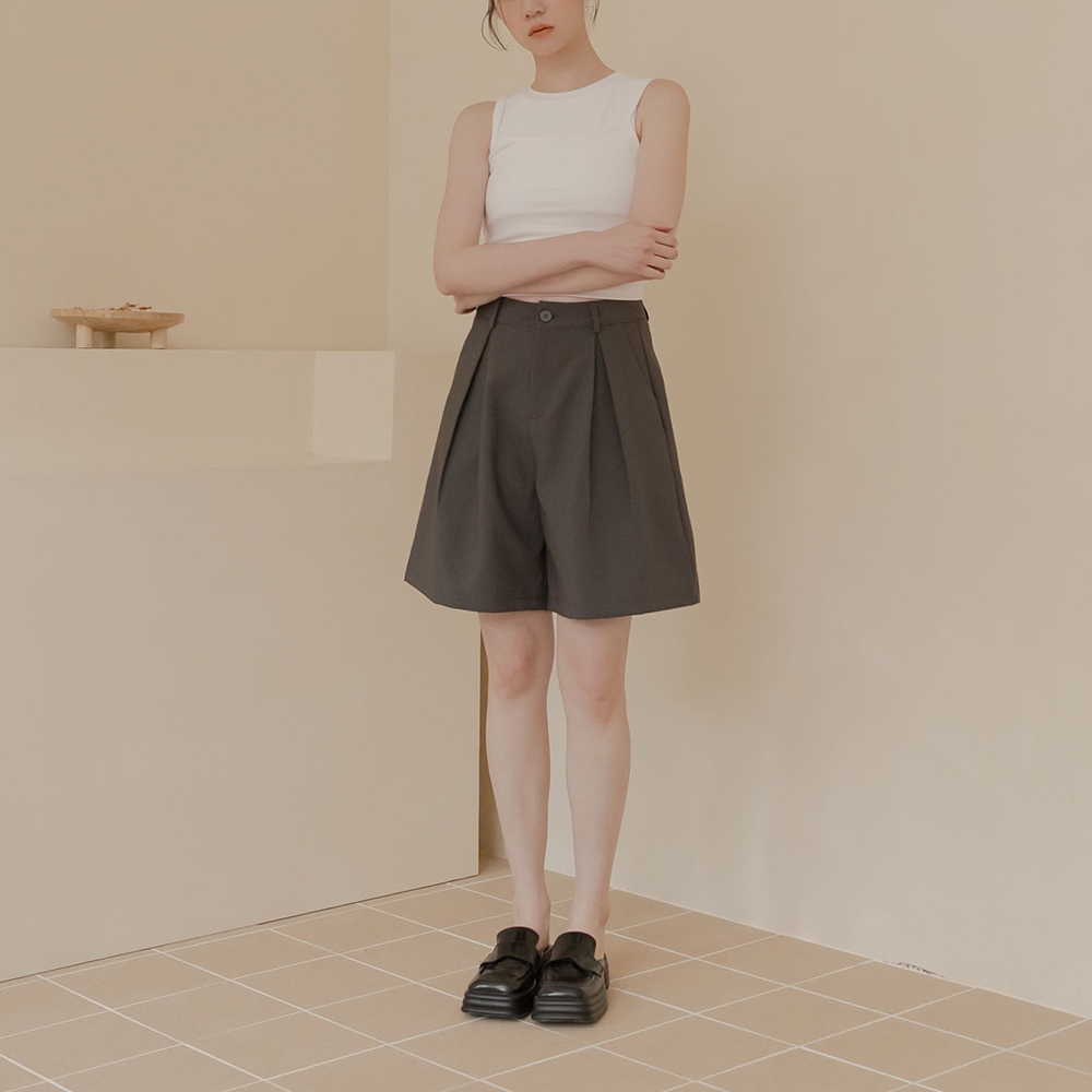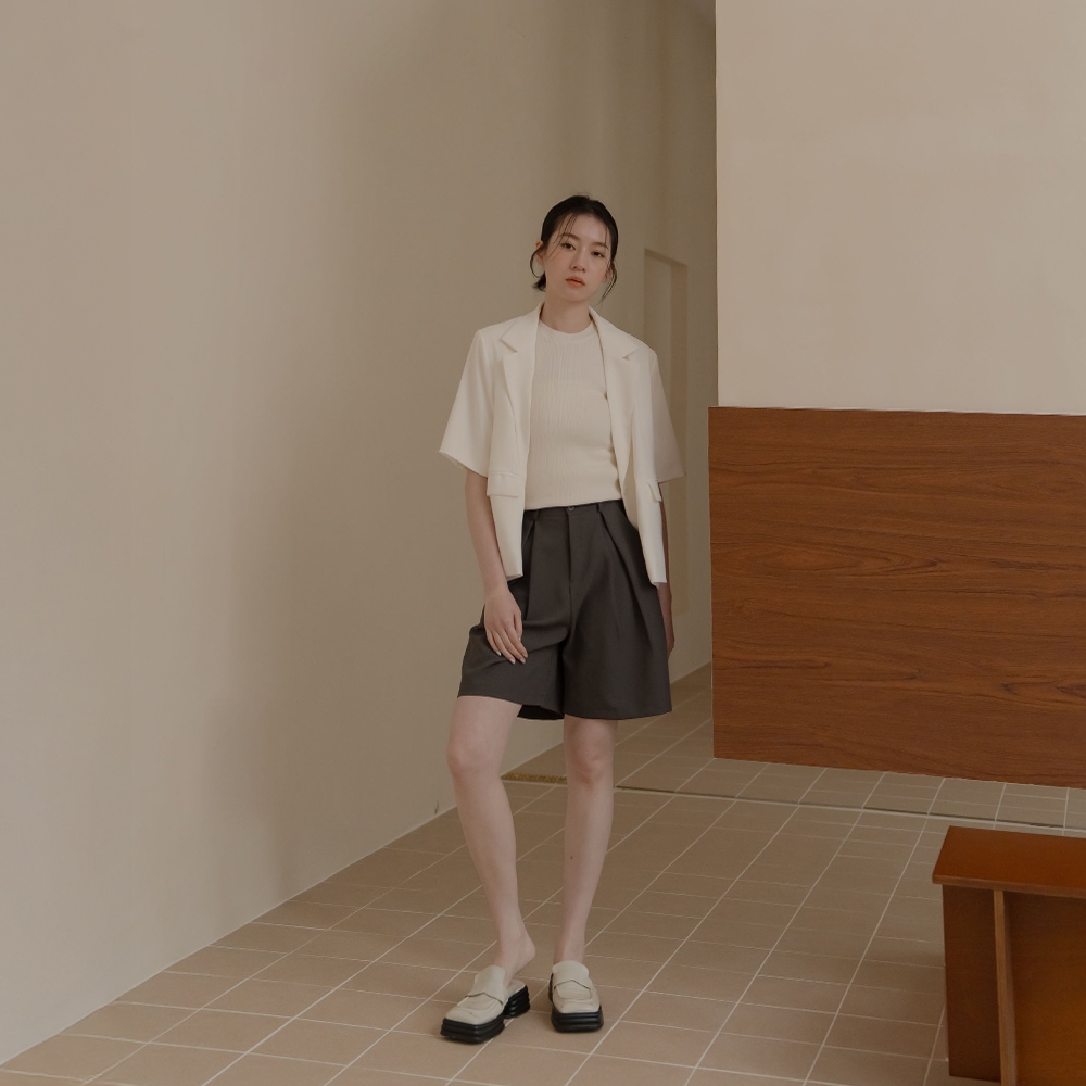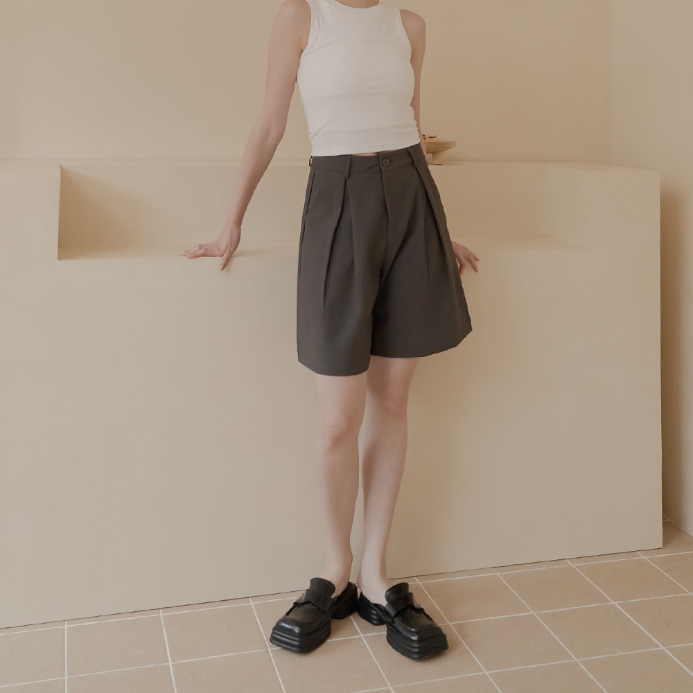 QUEENSHOP_ S 女裝 前打褶寬版五分西裝褲-灰 S/M/L 現+預 【04030500】灰S|灰M|灰LShortsQUEENSHOP