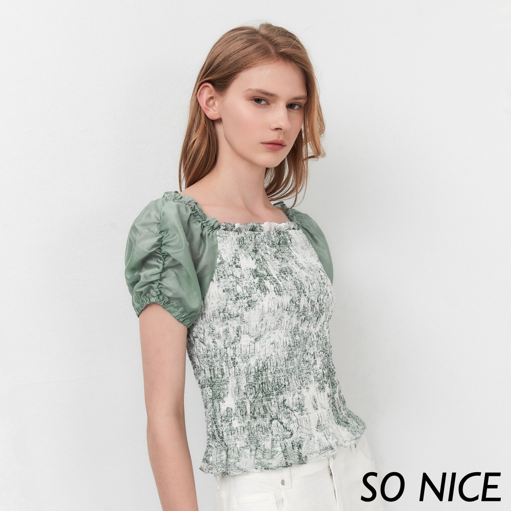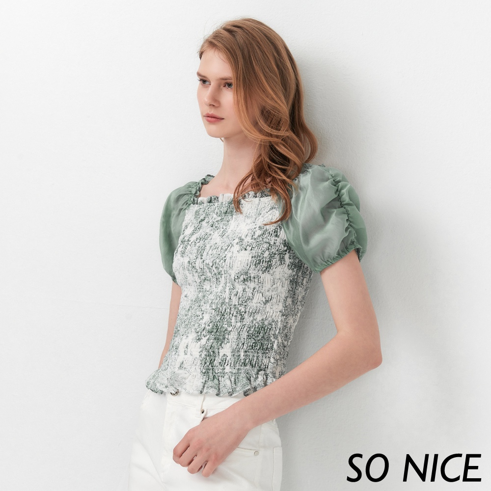 SONICE【特惠】甜美印花雪紡上衣|都會時尚女裝【75331045】綠,42(XL)|綠,34(XS)|綠,36(S)|綠,38(M)|綠,40(L)T-shirtsSO NICE 官方旗艦店