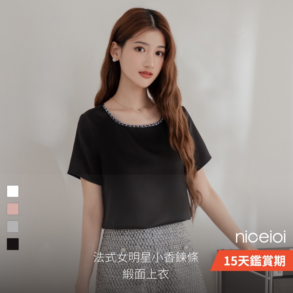 niceioi 小香上衣 短袖 短袖t恤 黑色 [法式女明星小香鍊條緞面上衣] 必敗選品 小香風 女裝小香上衣-灰,S|小香上衣-灰,L|小香上衣-粉,S|小香上衣-白,M|小香上衣-灰,XL|小香上衣-黑,S|小香上衣-黑,M|小香上衣-黑,XL|小香上衣-粉,M|小香上衣-白,S|小香上衣-白,L|小香上衣-白,XL|小香上衣-灰,M|小香上衣-黑,L|小香上衣-粉,L|小香上衣-粉,XLT-shirtsniceioi 官方旗艦店