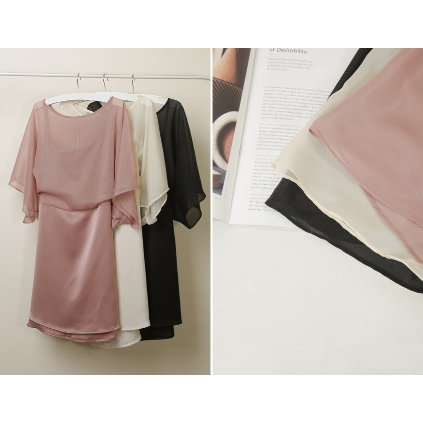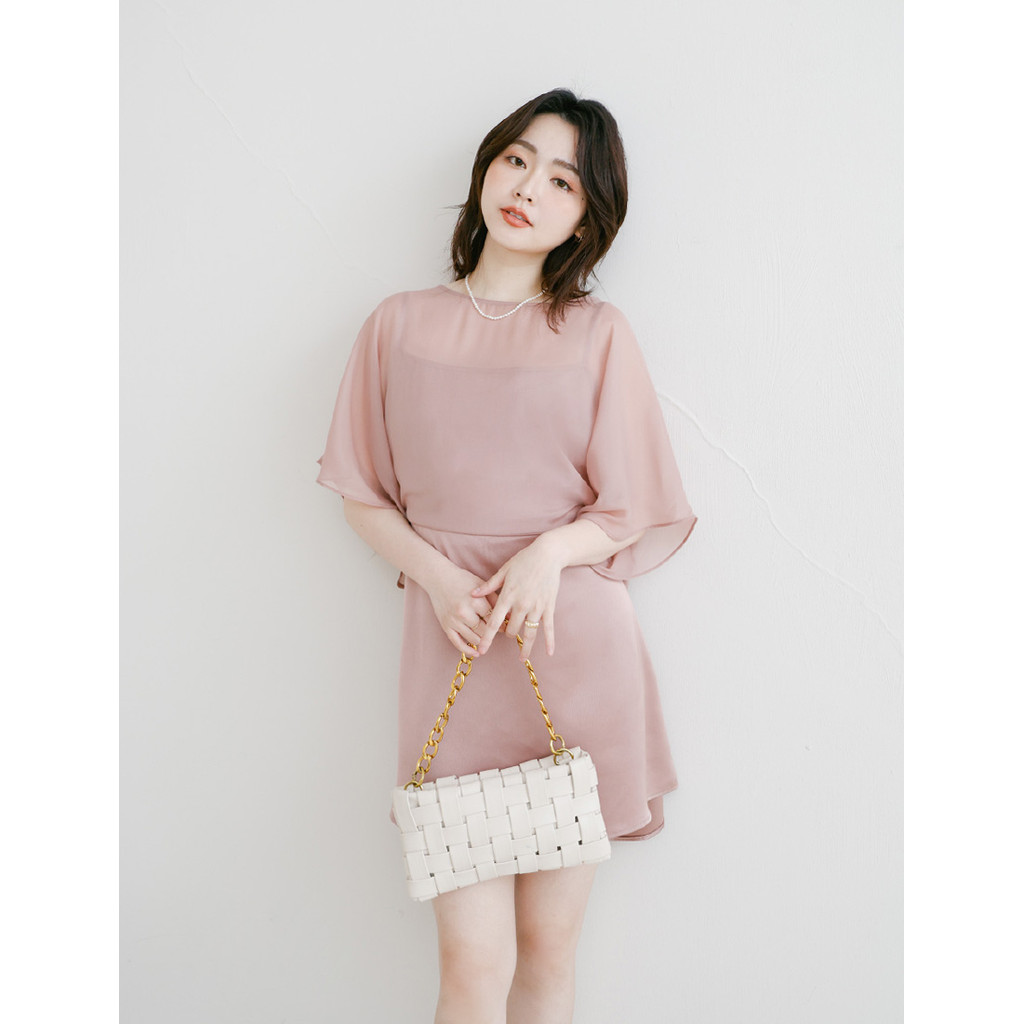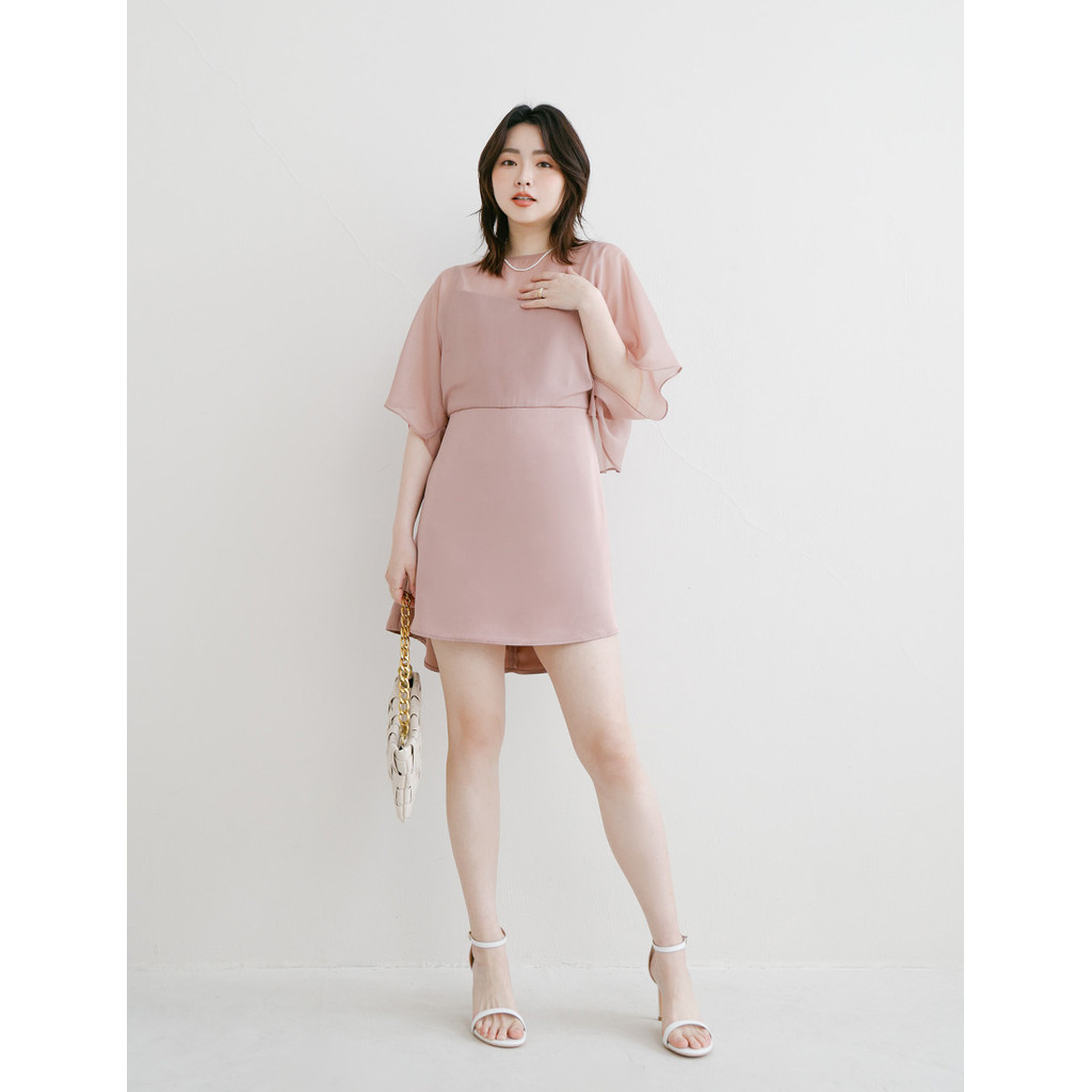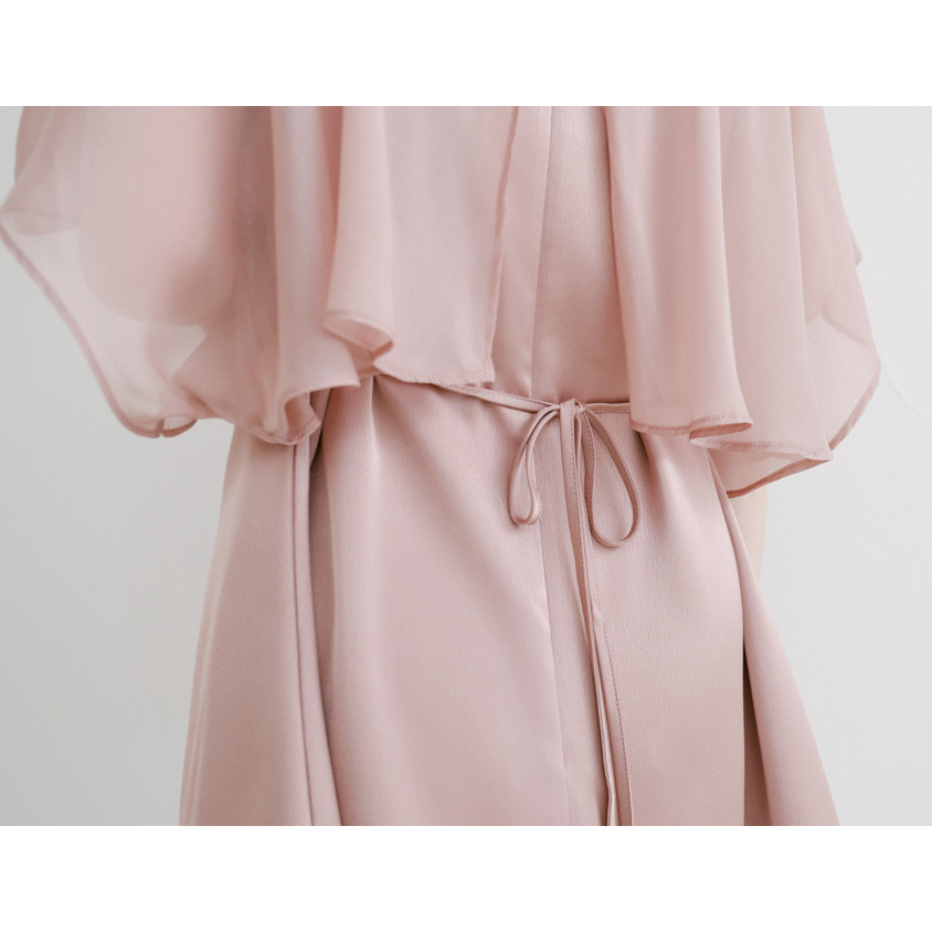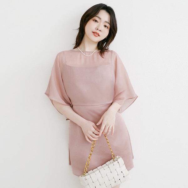 【PolyLulu】 仙女透膚假兩件光澤綁帶洋裝 MISS. 中大尺碼洋裝 藕粉色L|XL|2XL|3XLPOLY LULU丨BEAUTY HAS NO SIZE 中大尺碼女裝