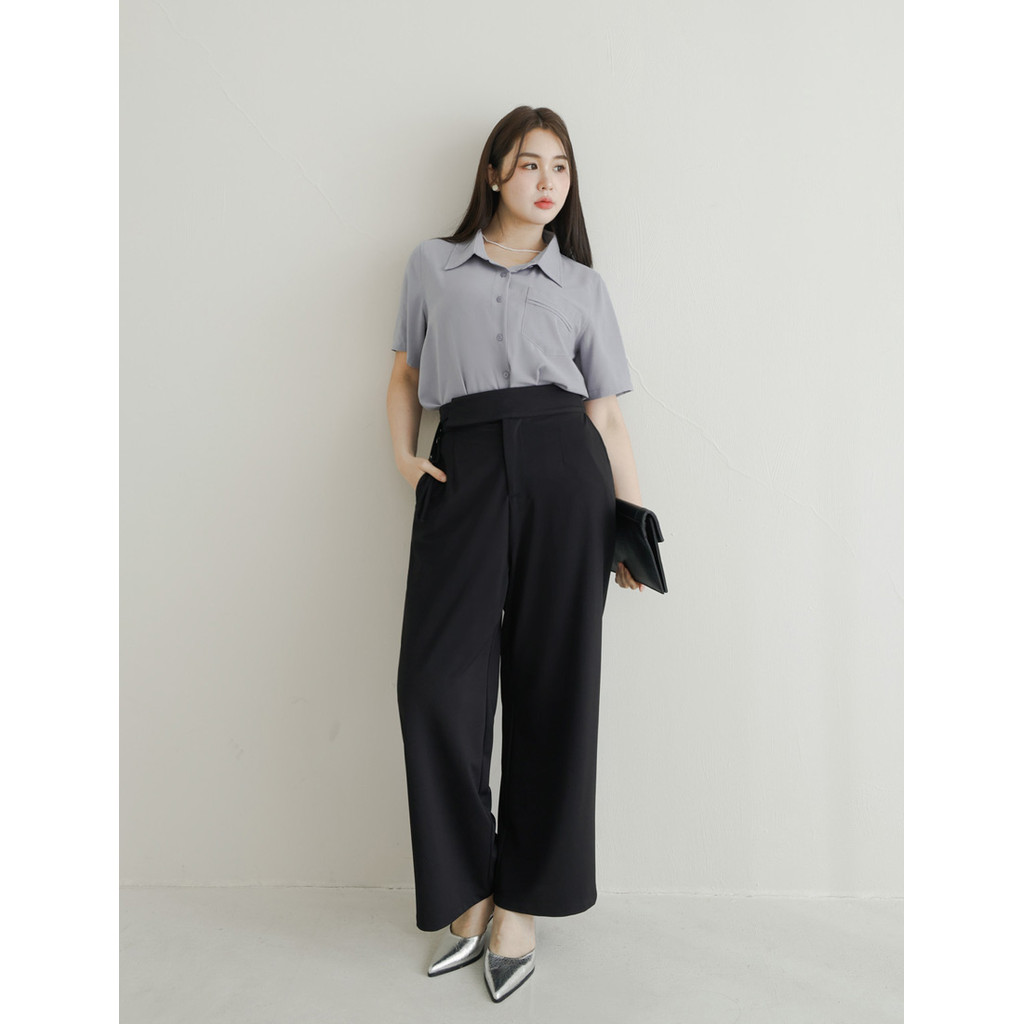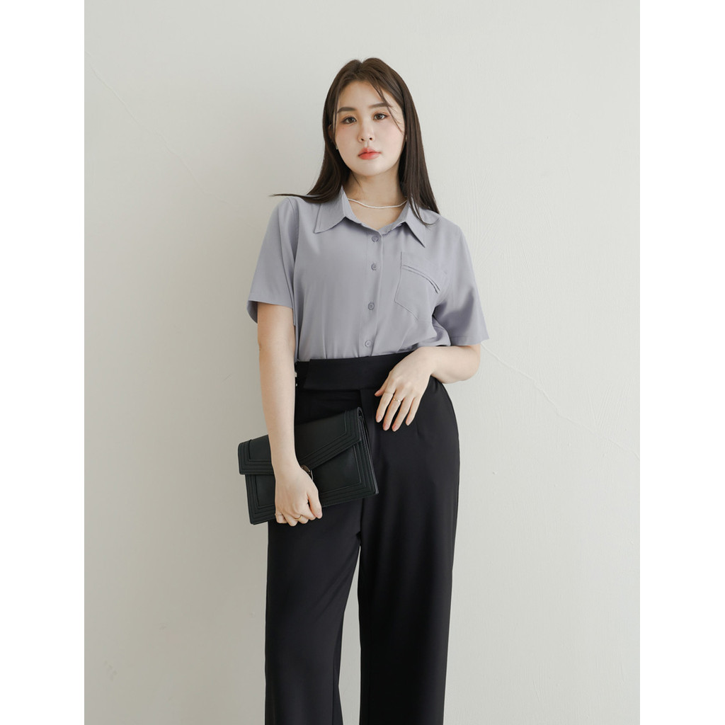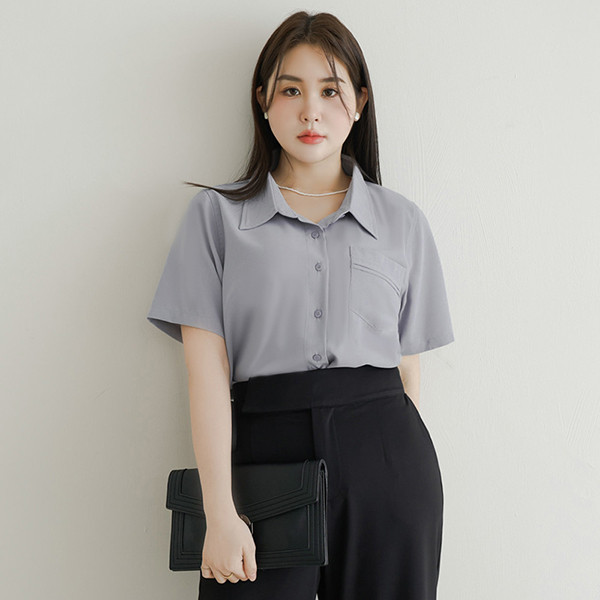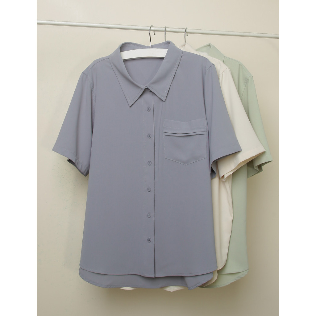 【PolyLulu】 輕氧微涼口袋抓褶短袖襯衫 MISS. 中大尺碼上衣 灰藍色2XL|3XL|L|XLShirts & BlousesPOLY LULU丨BEAUTY HAS NO SIZE 中大尺碼女裝