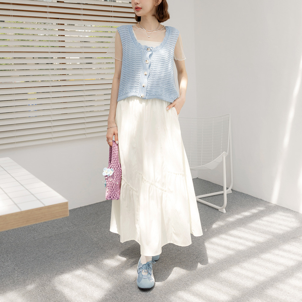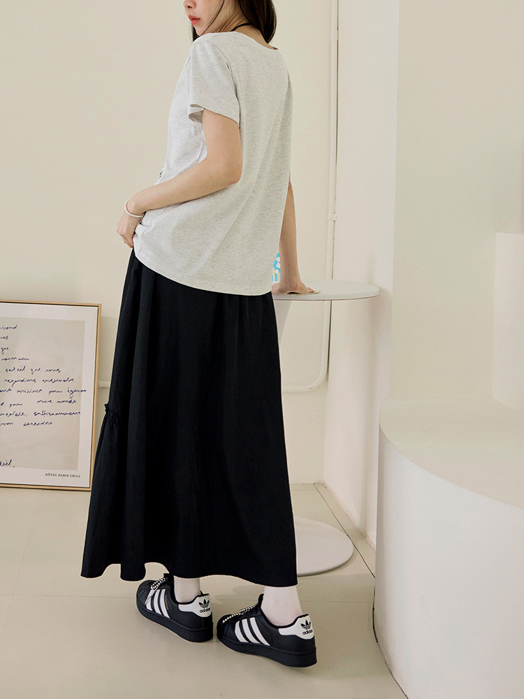 OB嚴選 不規則抽皺拼接腰鬆緊長裙 《CA3117》象牙白,M|象牙白,L|象牙白,XL|象牙白,2L|象牙白,3L|黑,M|黑,L|黑,XL|黑,2L|黑,3LOB嚴選官方旗艦店