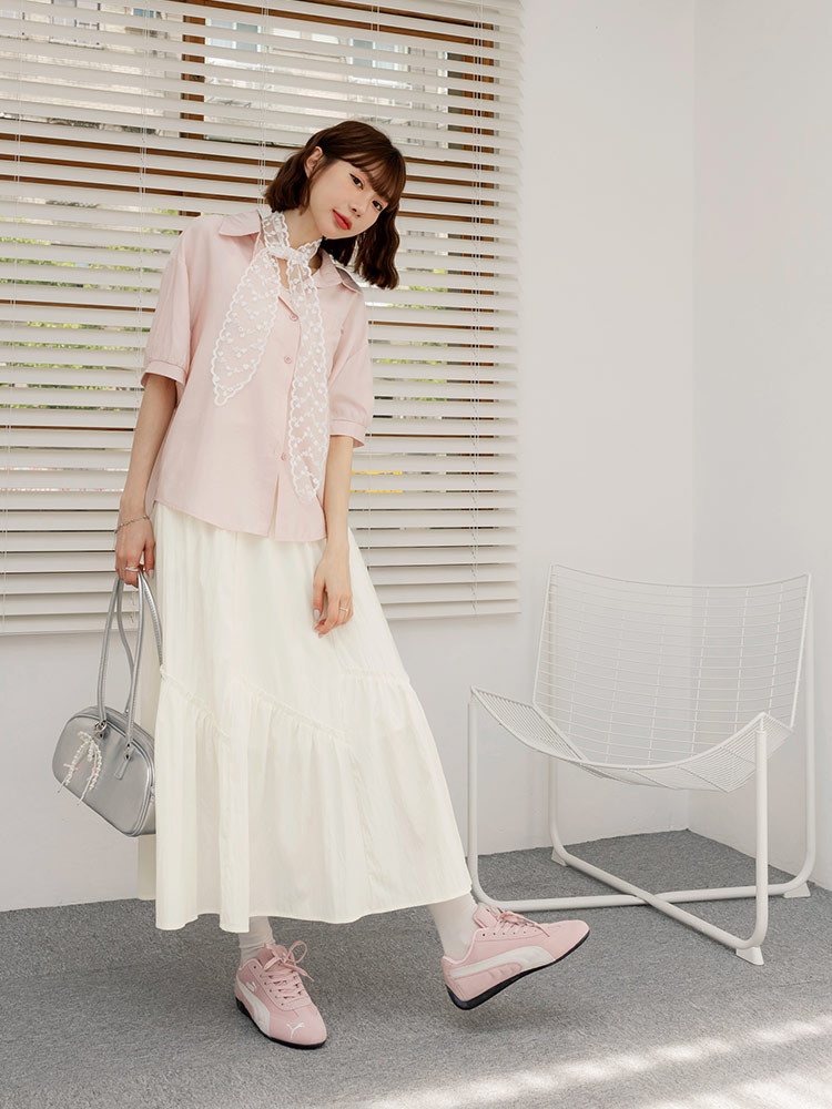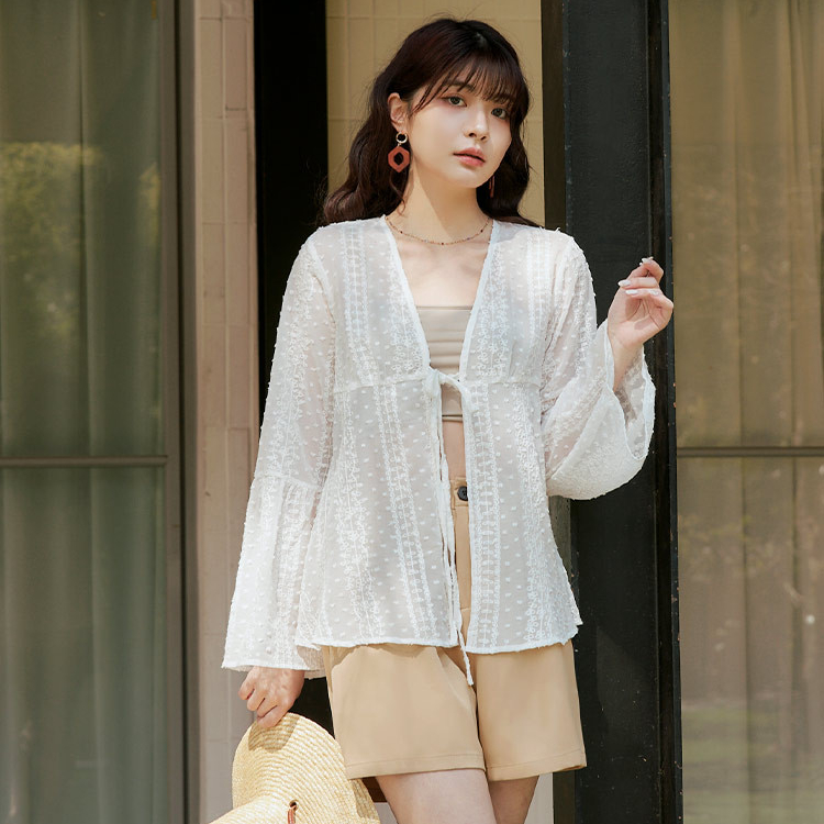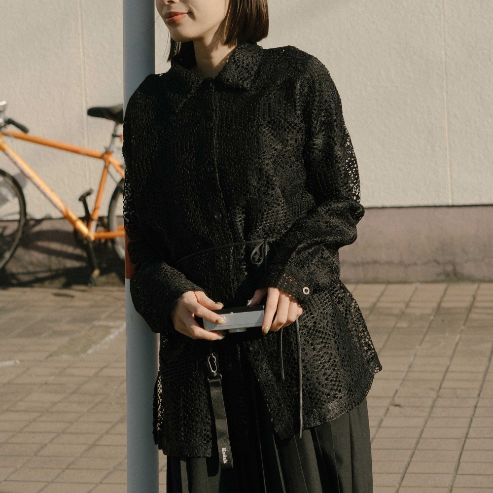 QUEENSHOP_ S 女裝 長袖 簡約鏤空緹花洞洞造型襯衫 兩色售 現+預 【01025480】黑|白Shirts & BlousesQUEENSHOP