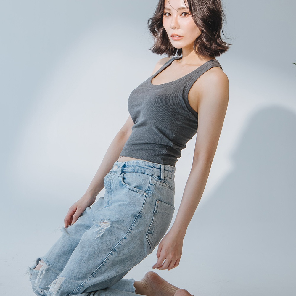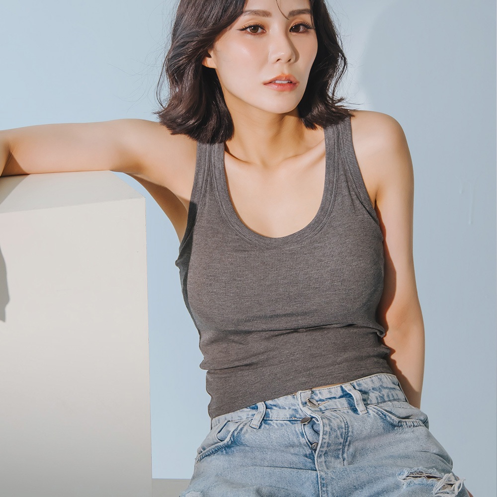 【Rabu Rabu】有感衣 彈力螺紋工背長版BRA TOP A205 (深灰)深灰,S|深灰,M|深灰,L|深灰,XLTanks & CamisolesRabuRabu|品牌旗艦店