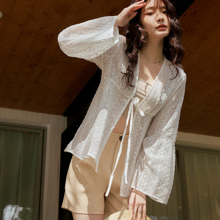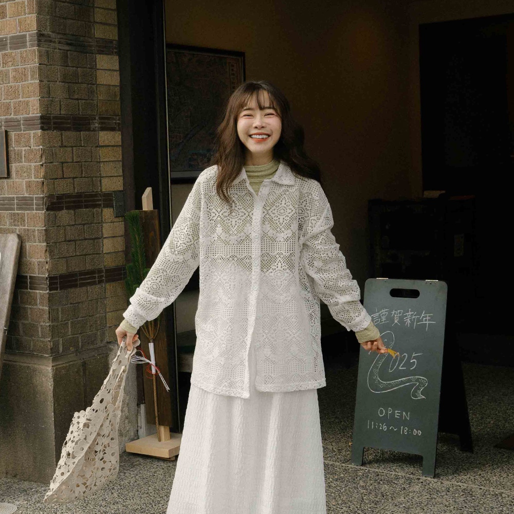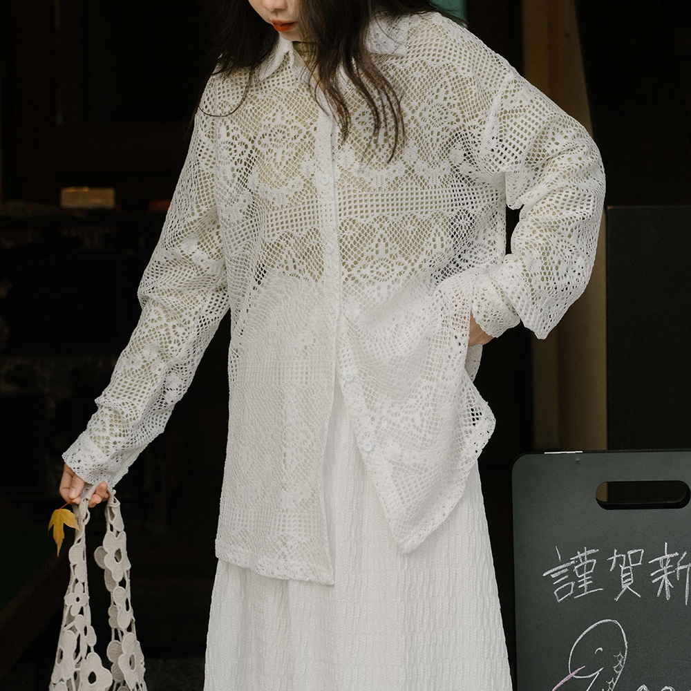 QUEENSHOP_ S 女裝 長袖 簡約鏤空緹花洞洞造型襯衫 兩色售 現+預 【01025480】