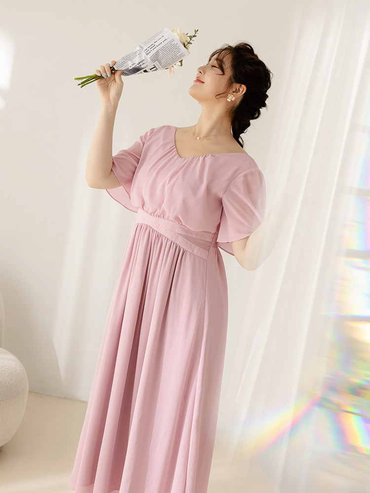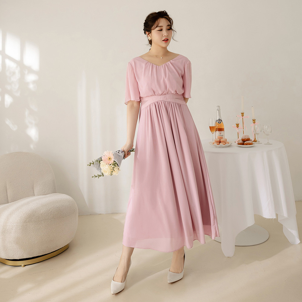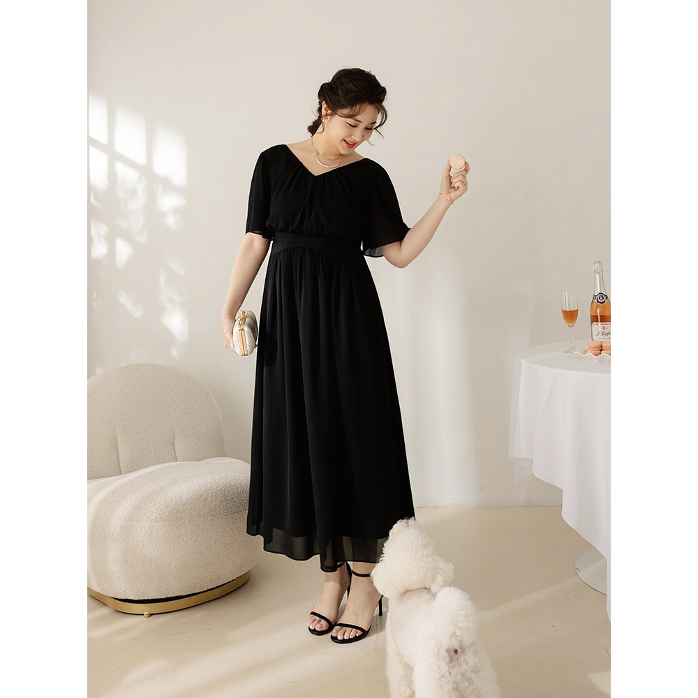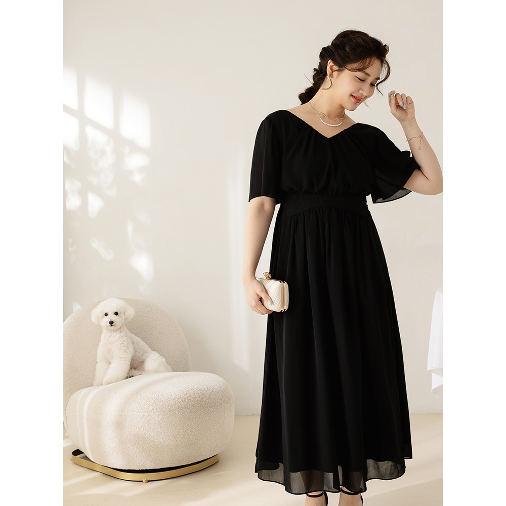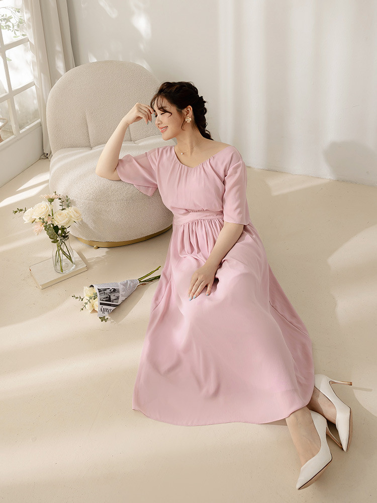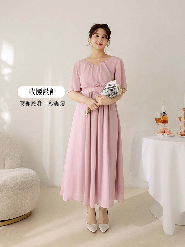 OB嚴選 雲朵自訂款-抓皺V領收腰傘襬長洋裝 《DA10069》大尺碼/女裝/現貨淺粉,XL|淺粉,2L|淺粉,3L|黑色,XL|黑色,2L|黑色,3LOB嚴選官方旗艦店