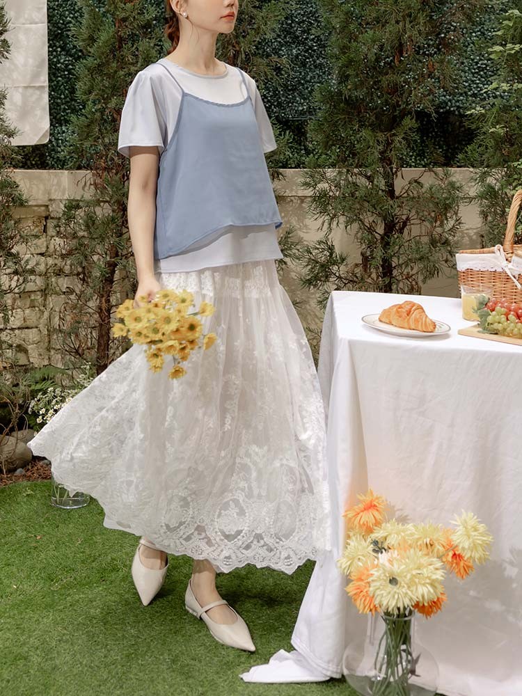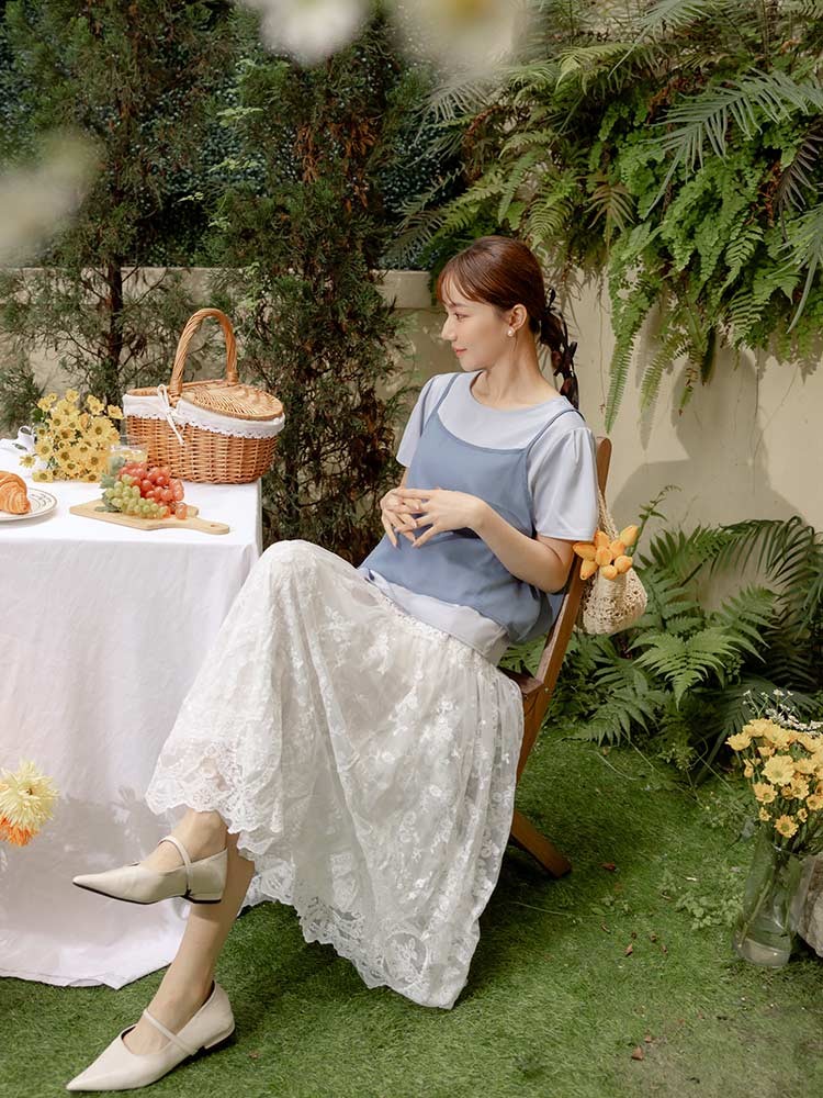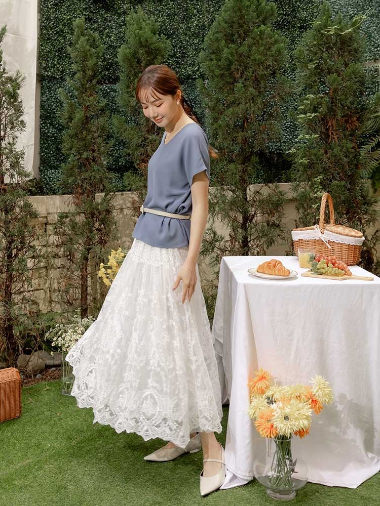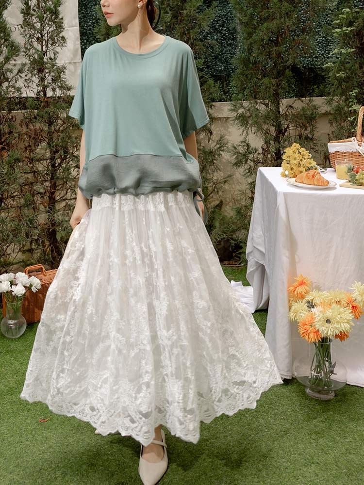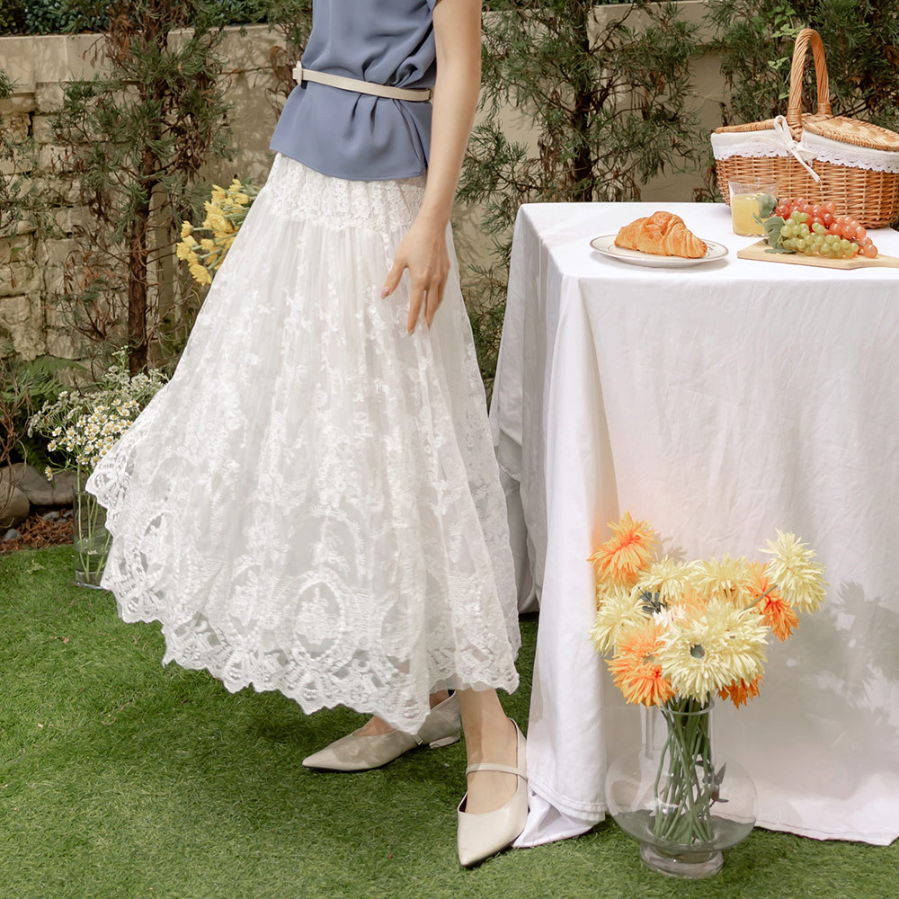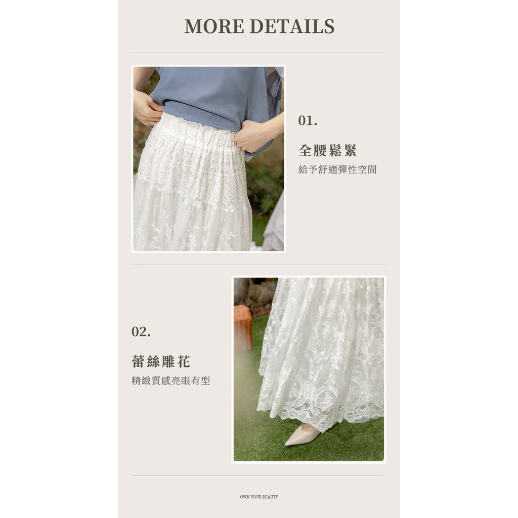 OB嚴選 浪漫鏤空蕾絲雕花鬆緊腰長裙 《CA3084》白,M|白,L|白,XL|白,2L|白,3L|白,4L|黑,M|黑,L|黑,XL|黑,2L|黑,3L|黑,4LOB嚴選官方旗艦店