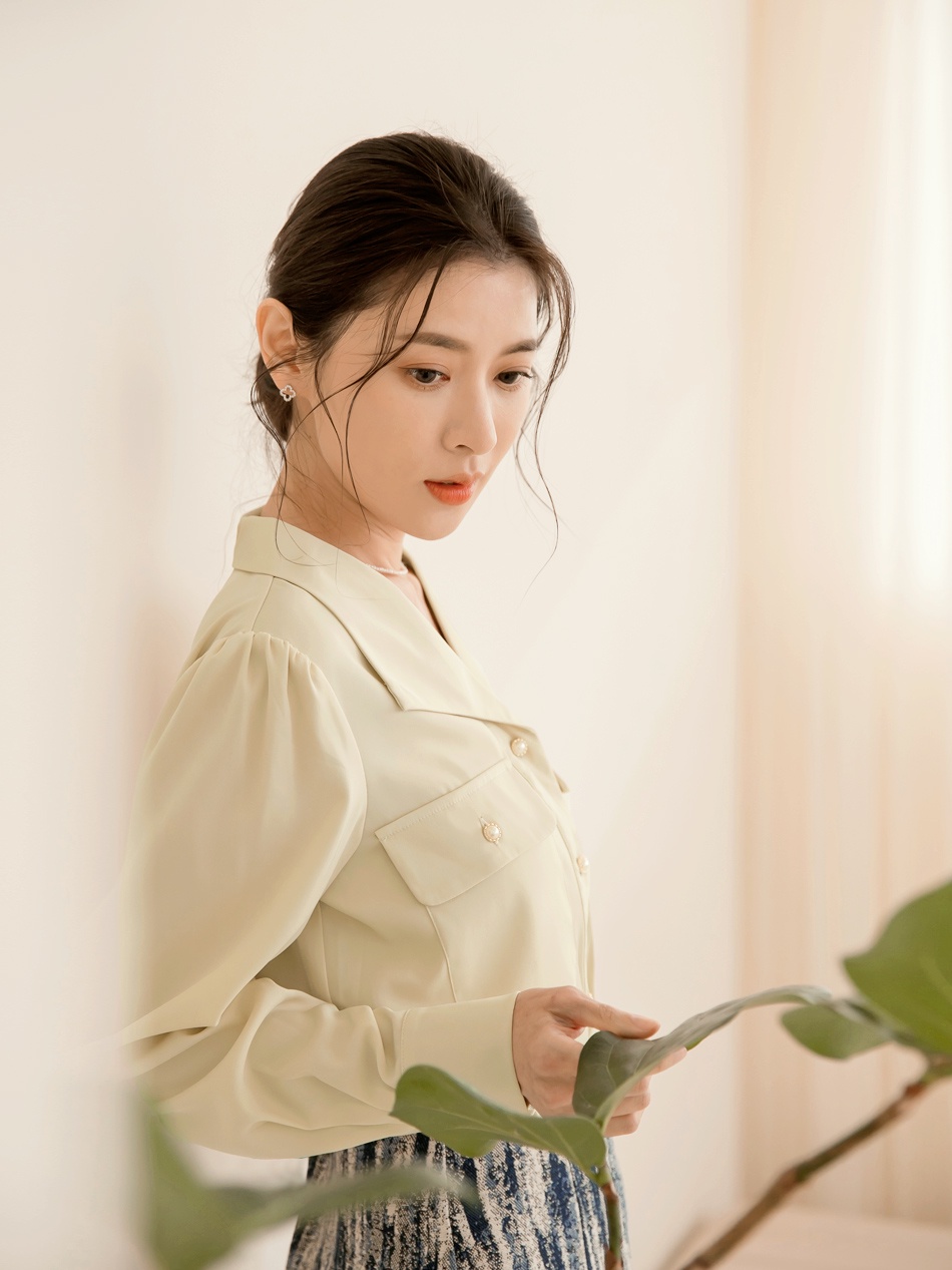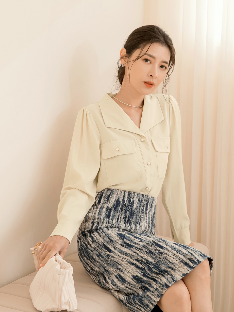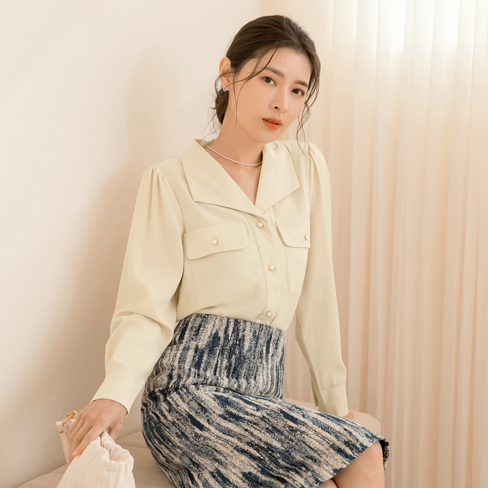 OB嚴選 法式珍珠釦雙口袋袖打褶雪紡上衣 《AB17738》大尺碼/現貨/女裝杏,2L|褐,M|褐,L|褐,XL|杏,S|杏,XL|褐,S|褐,2L|褐,3L|杏,M|杏,L|杏,3LT-shirtsOB嚴選官方旗艦店