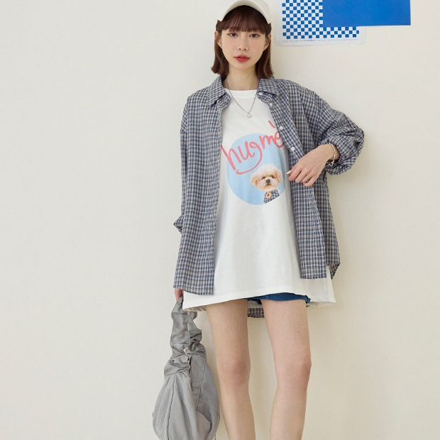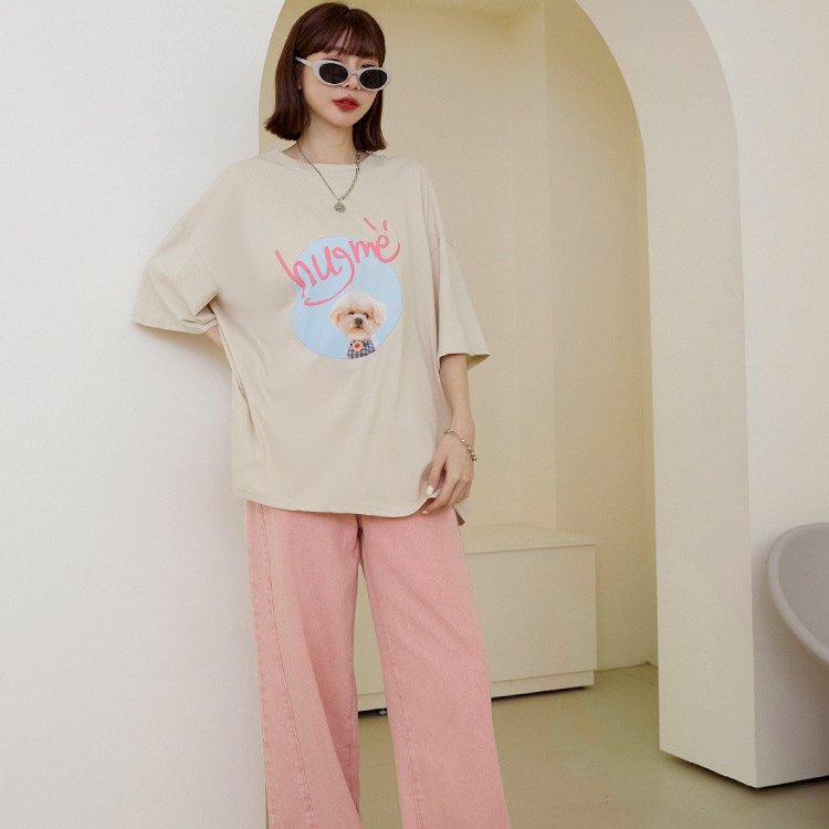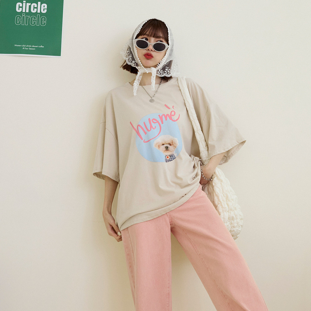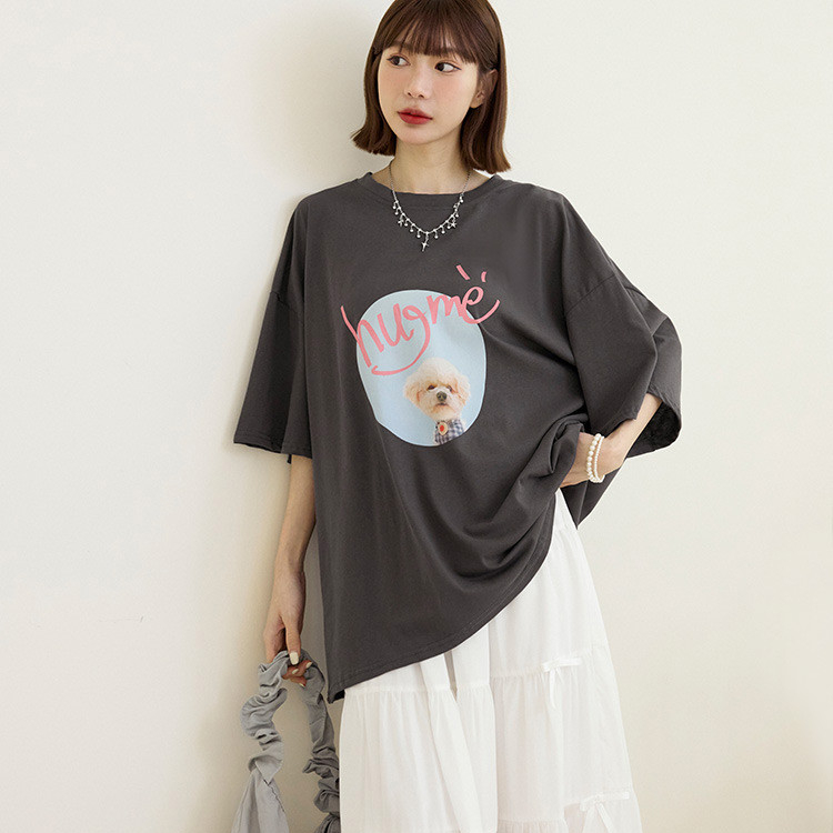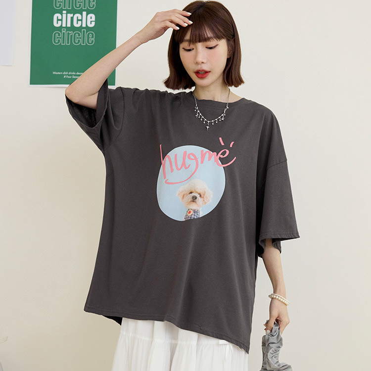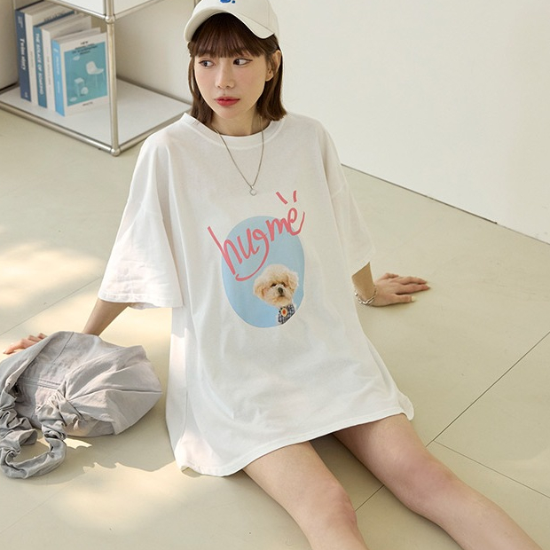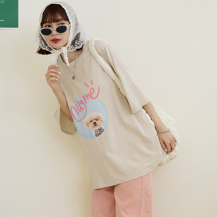 OB嚴選 可愛小狗相片印寬版棉質上衣 《AB20265》奶茶,F|奶茶,3L|白,F|白,3L|鐵灰,F|鐵灰,3LT-shirtsOB嚴選官方旗艦店