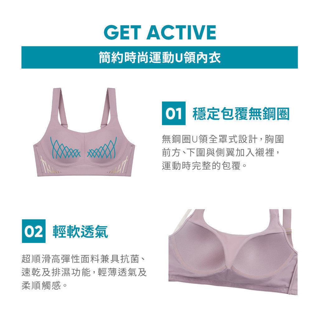 sloggi-GET ACTIVE 簡約時尚運動U領無鋼圈內衣 千歲綠|11-1908 IVM|L|EL|EELBrassloggi 官方旗艦店