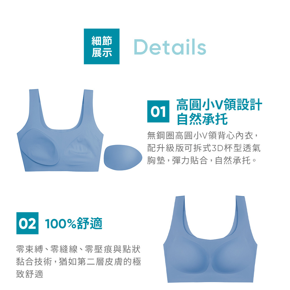sloggi-ZERO FEEL 2.0升級版零感系列高圓小V領背心式無鋼圈內衣 青藍|88R382 P7S|M|L|ELBrassloggi 官方旗艦店
