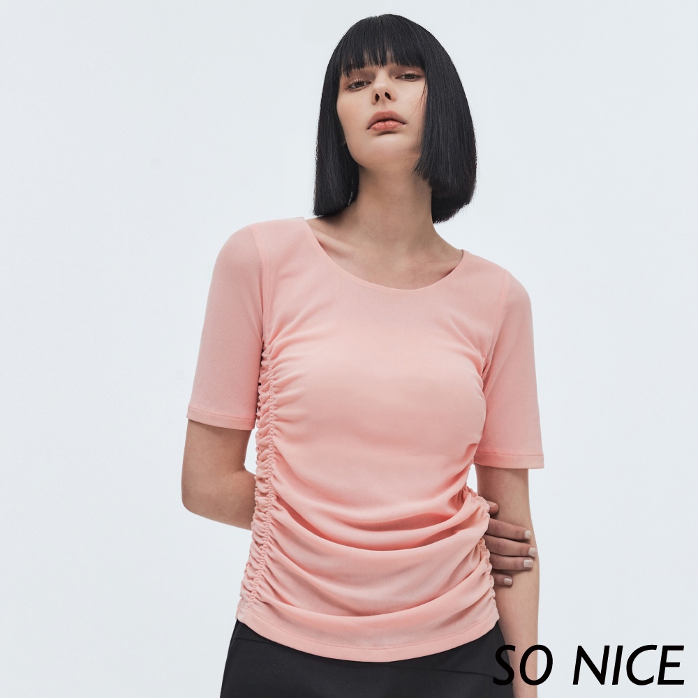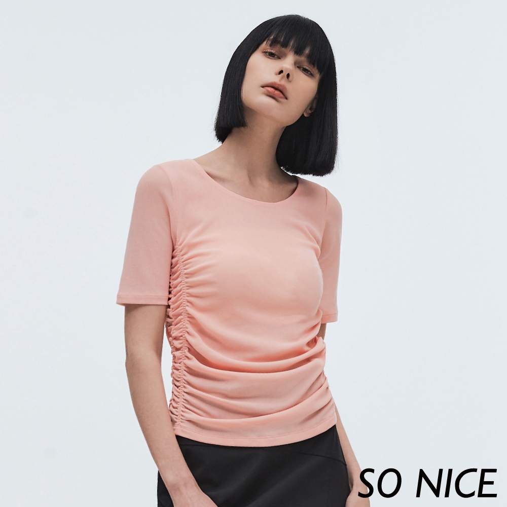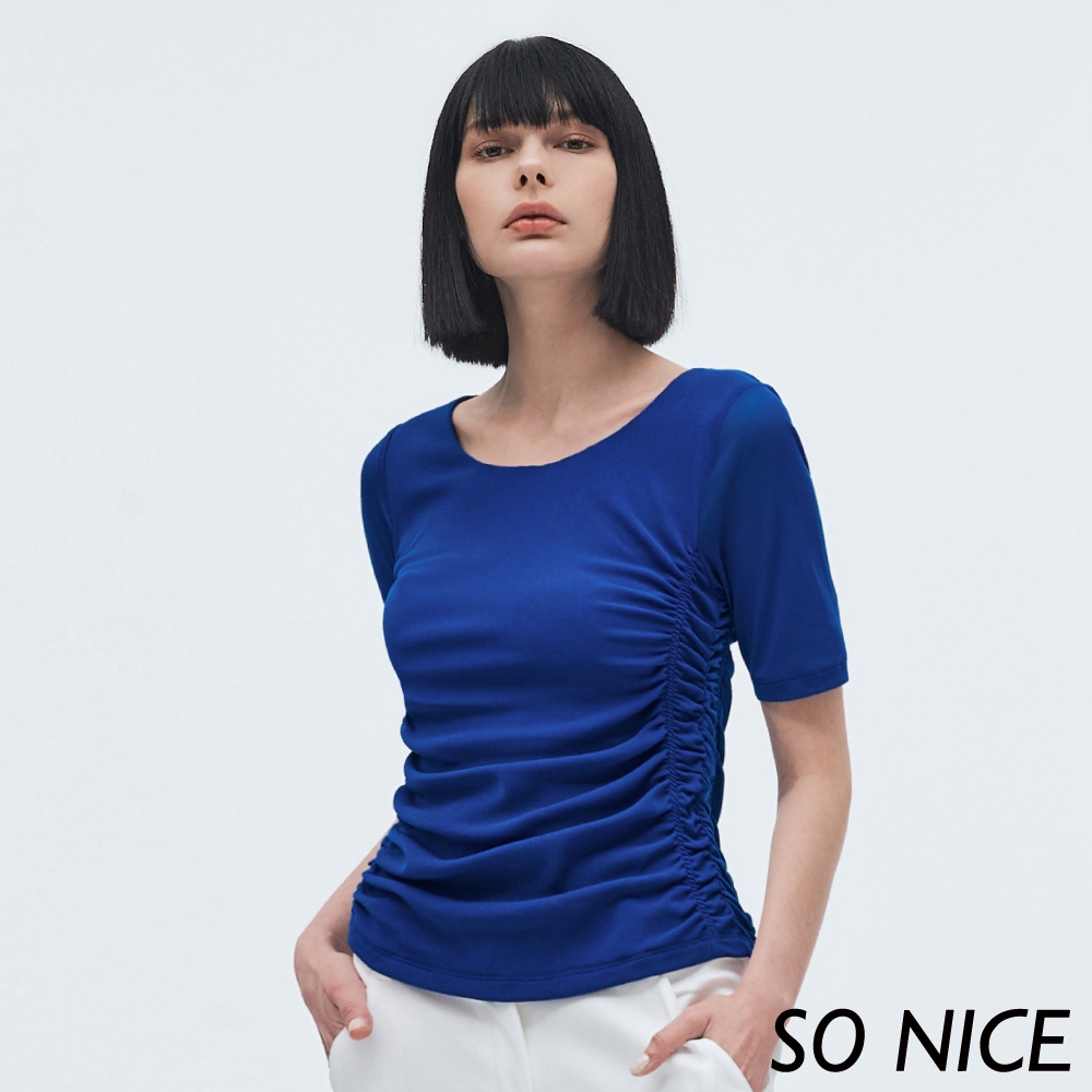 SO NICE【特惠】抽皺網布修身上衣|粉/深藍|都會時尚女裝【73331011】深藍,38(M)|深藍,40(L)|深藍,42(XL)|粉,38(M)|深藍,34(XS)|粉,40(L)|粉,42(XL)|深藍,36(S)|粉,34(XS)|粉,36(S)T-shirtsSO NICE 官方旗艦店