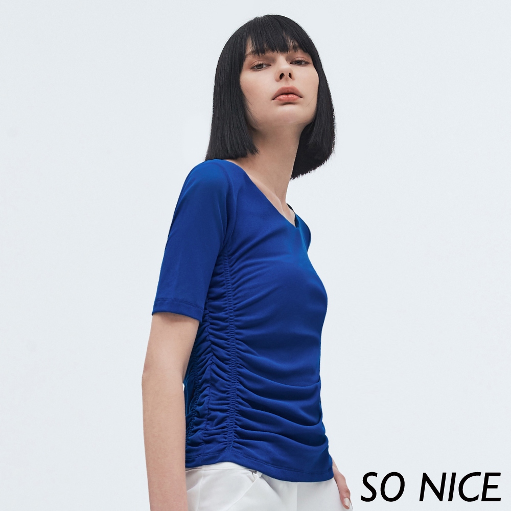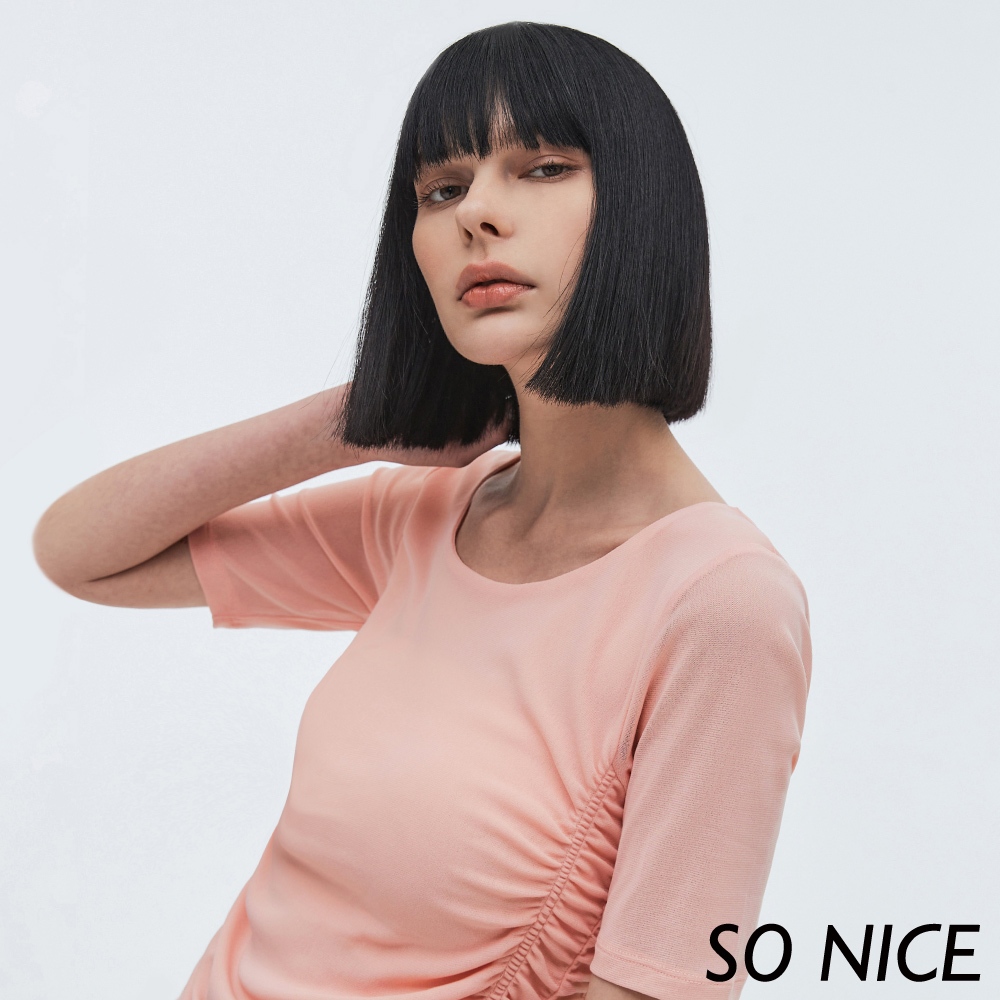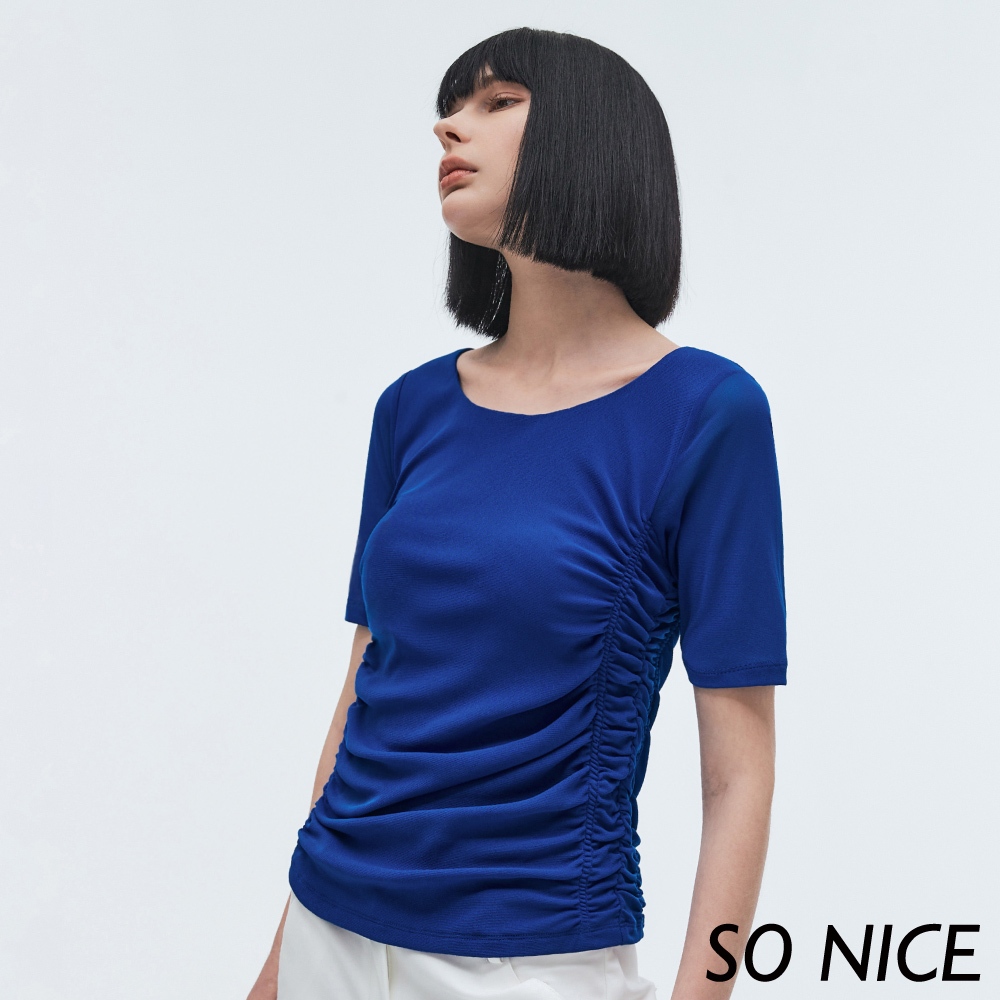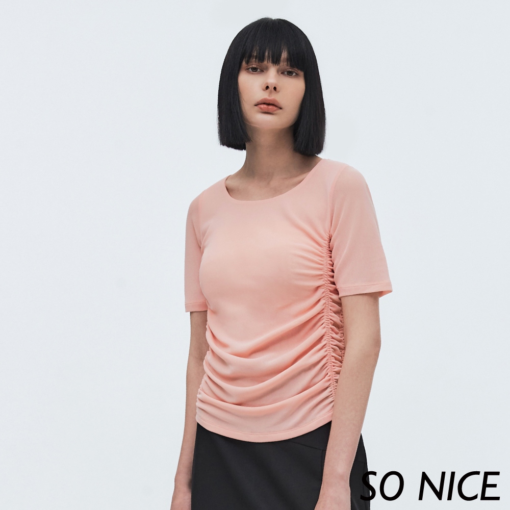 SO NICE【特惠】抽皺網布修身上衣|粉/深藍|都會時尚女裝【73331011】深藍,38(M)|深藍,40(L)|深藍,42(XL)|粉,38(M)|深藍,34(XS)|粉,40(L)|粉,42(XL)|深藍,36(S)|粉,34(XS)|粉,36(S)T-shirtsSO NICE 官方旗艦店