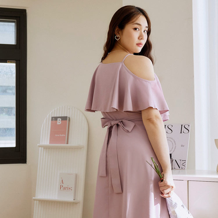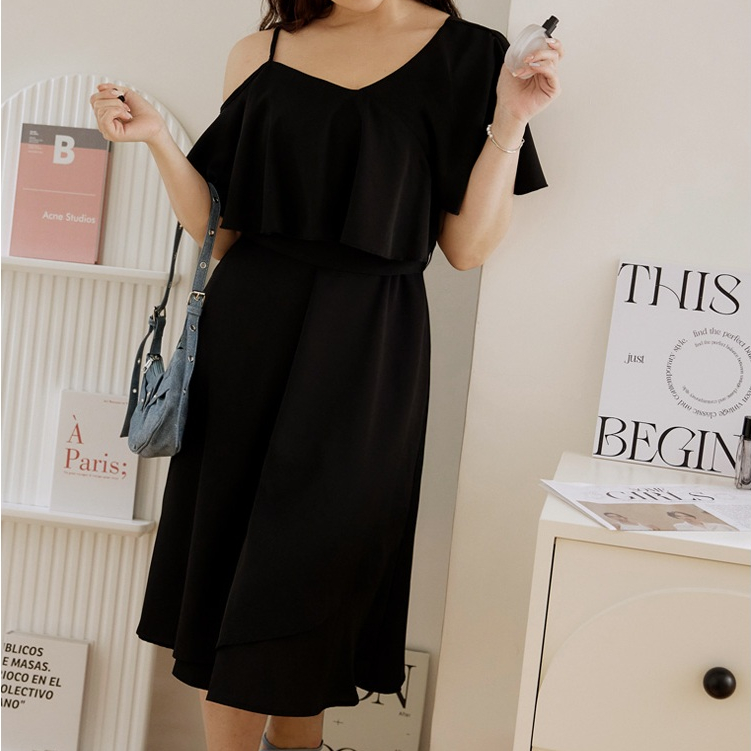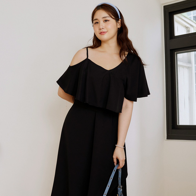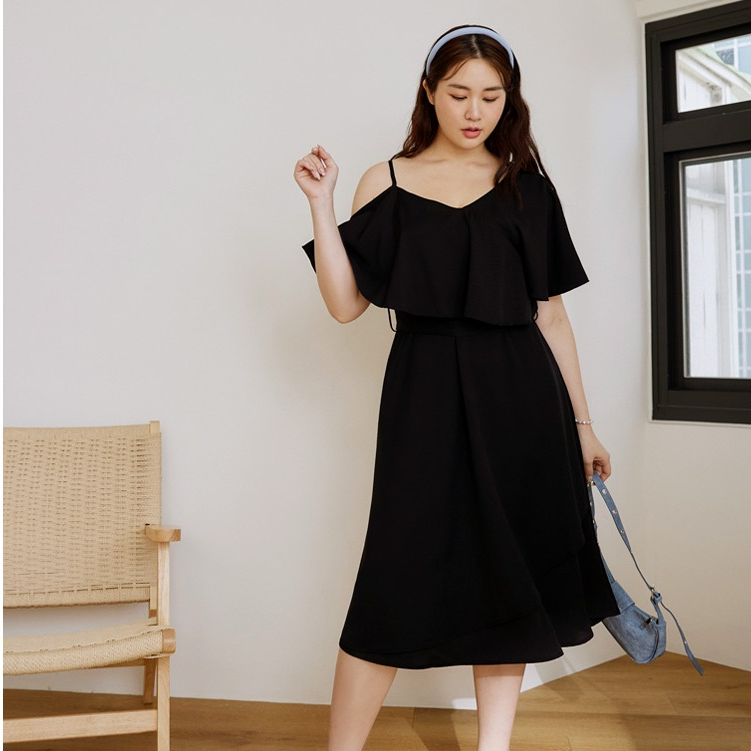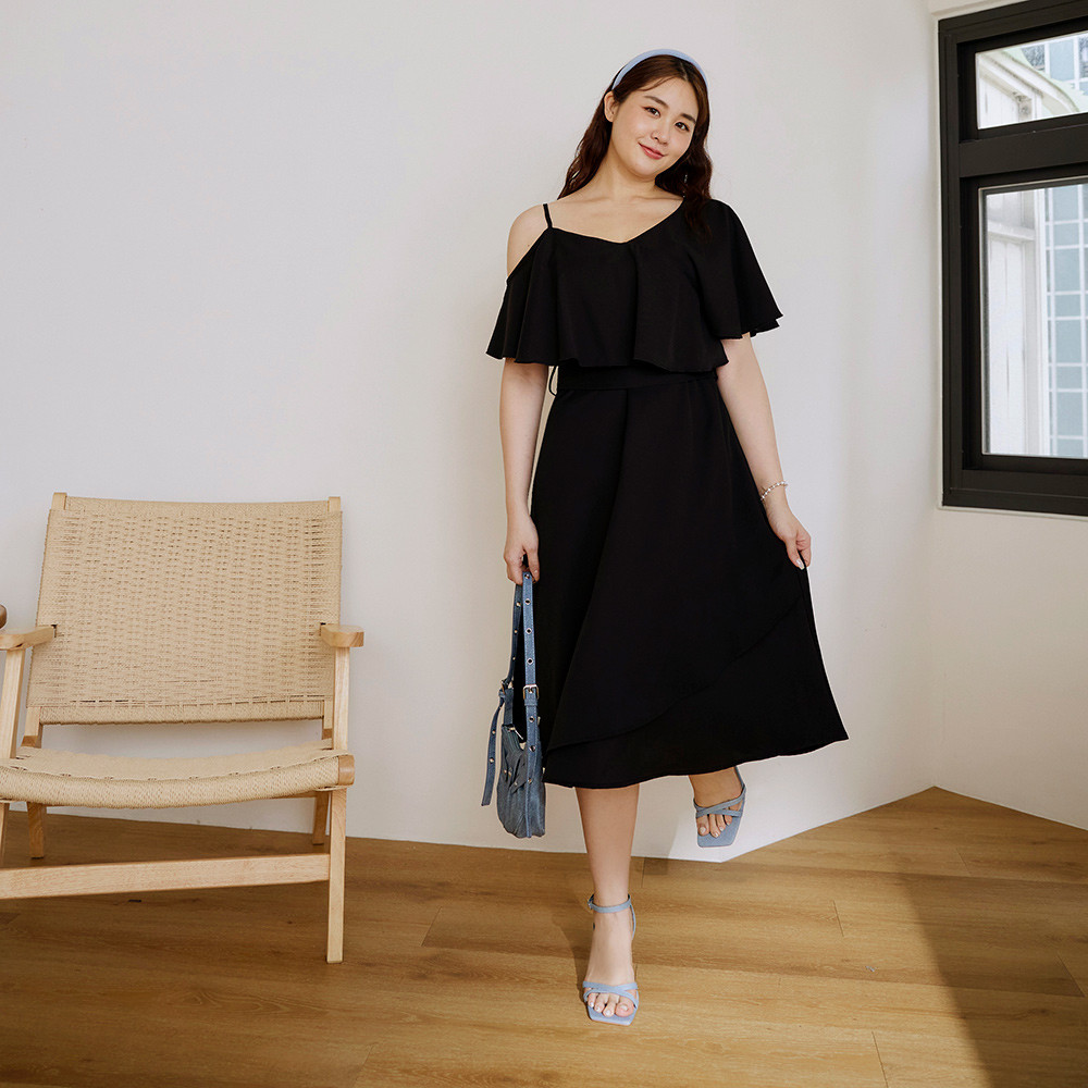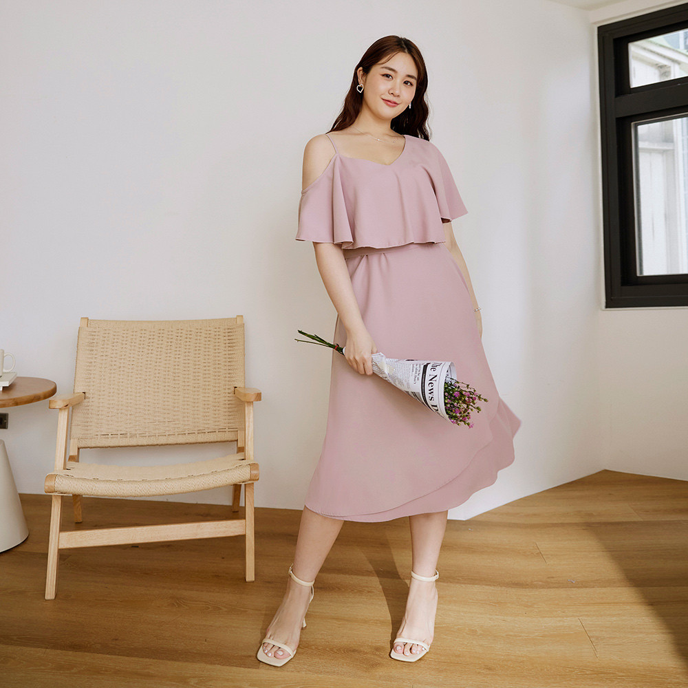 OB嚴選 雲朵自訂款-露肩荷葉造型收腰傘襬長洋裝 《DA10127》大尺碼/女裝/現貨黑,XL|黑,2L|黑,3L|淺粉,XL|淺粉,2L|淺粉,3LOB嚴選官方旗艦店