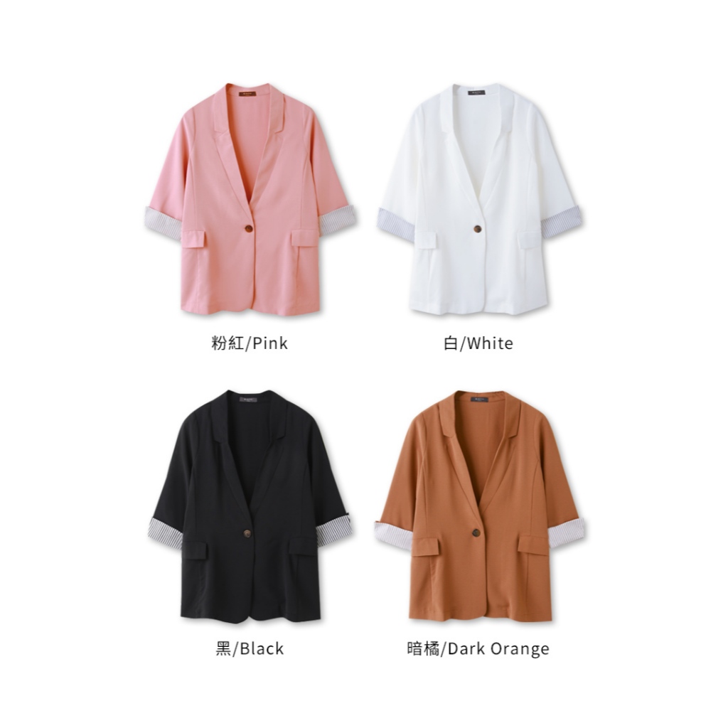 OB嚴選 素色不易皺條紋反摺七分袖西裝外套 《EA3660》大尺碼/女裝/現貨黑,2L|黑,3L|白,S|白,M|白,L|白,XL|白,2L|白,3L|暗橘,S|暗橘,M|暗橘,L|暗橘,XL|暗橘,2L|暗橘,3L|粉紅,S|粉紅,M|粉紅,L|粉紅,XL|粉紅,2L|粉紅,3L|黑,S|黑,M|黑,L|黑,XLBlazersOB嚴選官方旗艦店