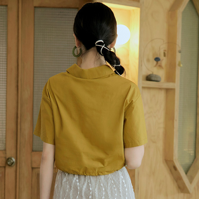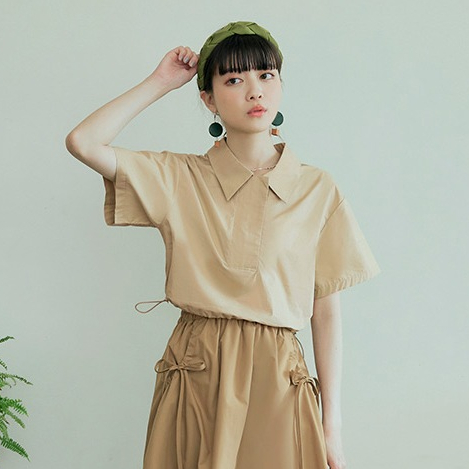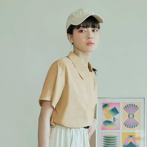 OB嚴選 純棉拉鍊翻領半開襟抽繩下擺上衣 《AB19246》日系/現貨/女裝芥末綠,S|芥末綠,M|芥末綠,L|芥末綠,XL|卡其杏,S|卡其杏,M|卡其杏,L|卡其杏,XLT-shirtsOB嚴選官方旗艦店