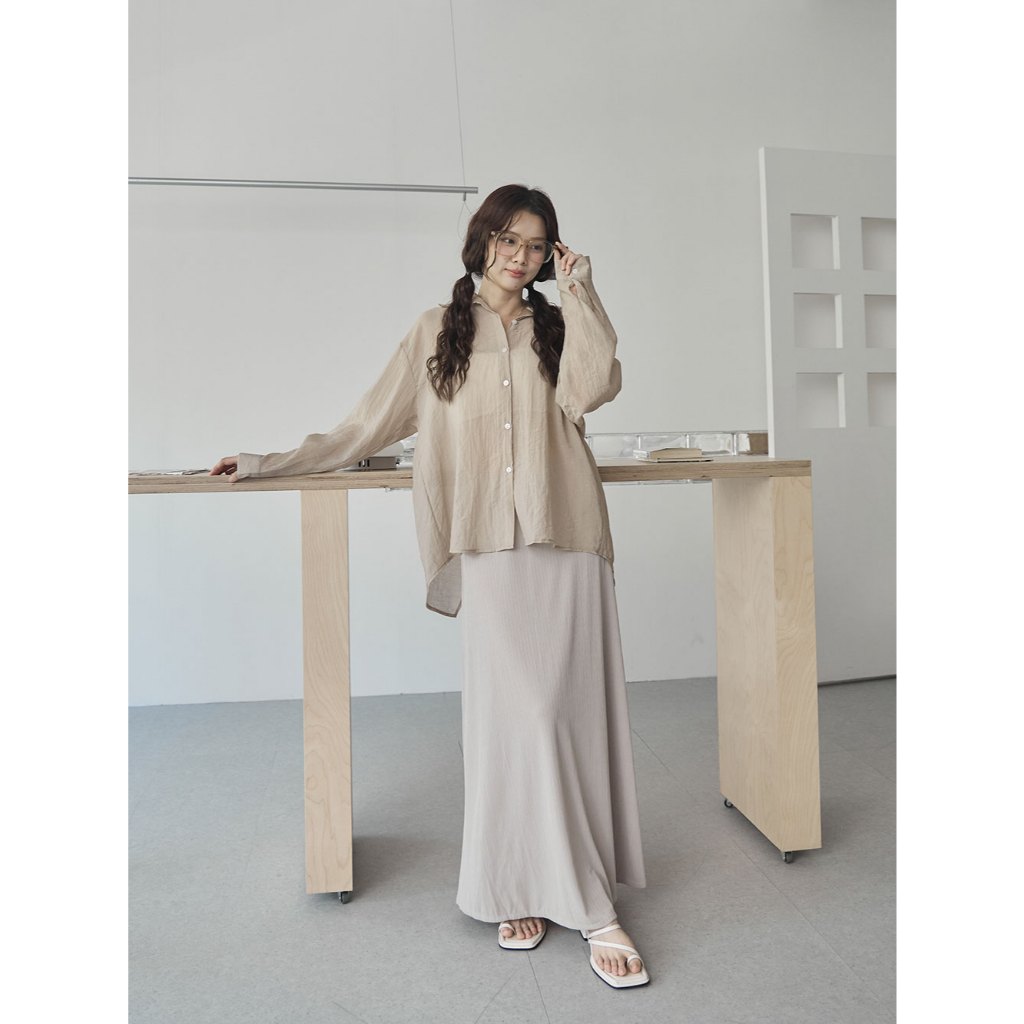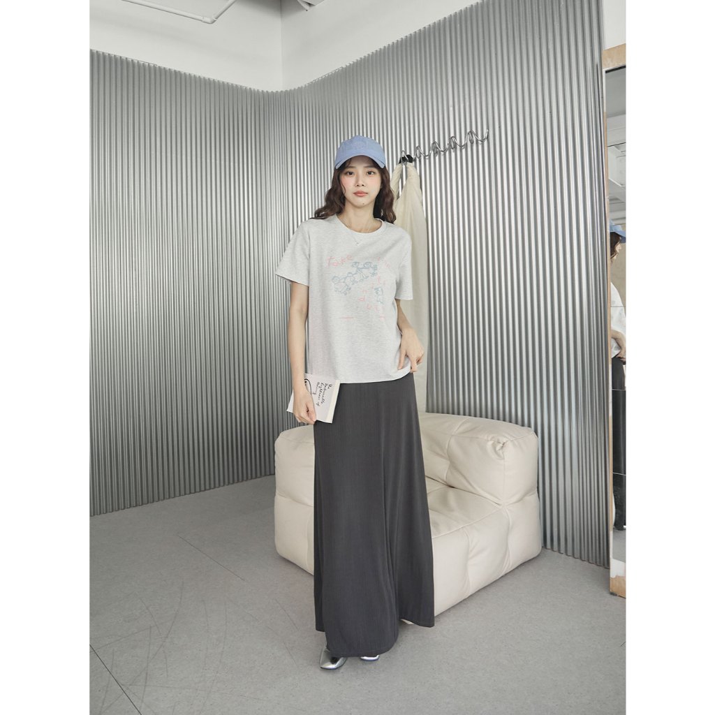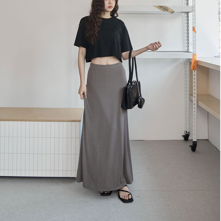 Space Picnic|-5°C涼感細坑條直身裙-4色【2505241】黑|深灰|奶茶|灰咖Space Picnic