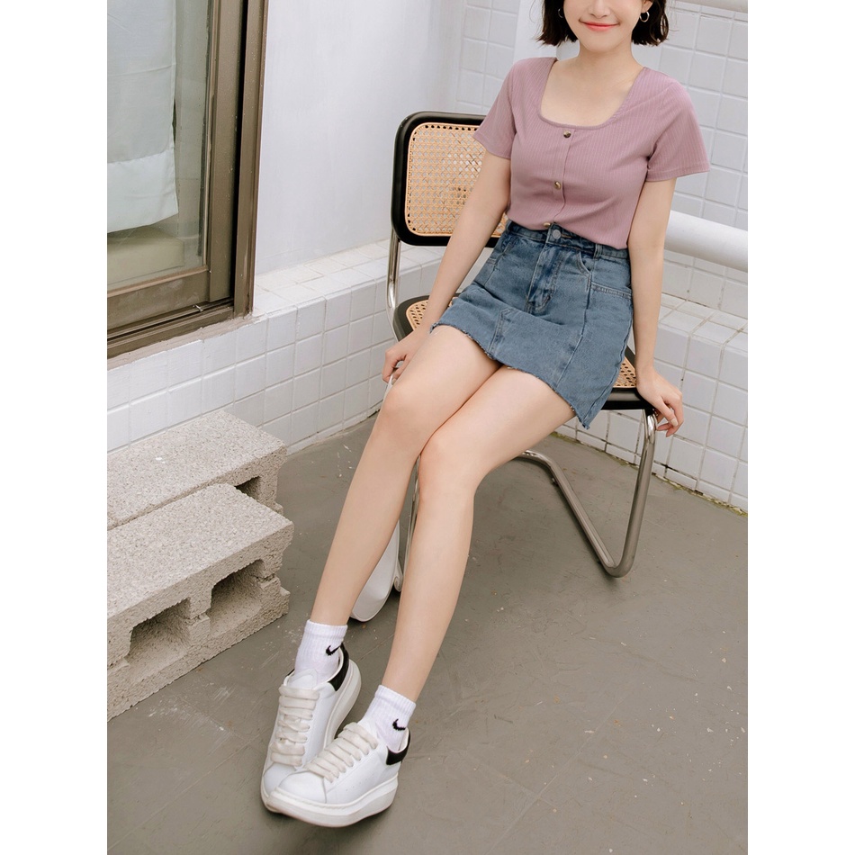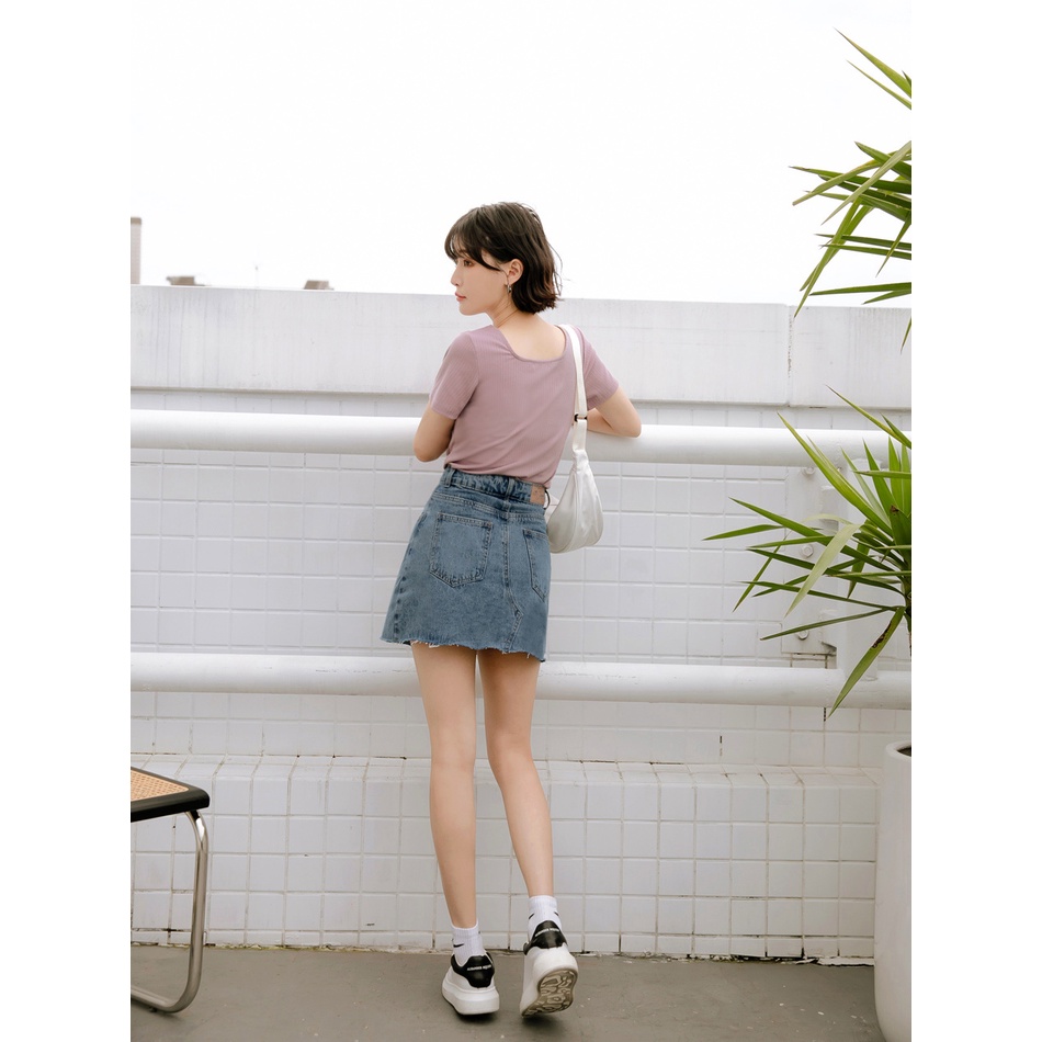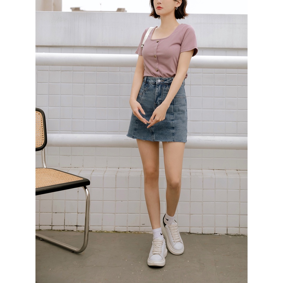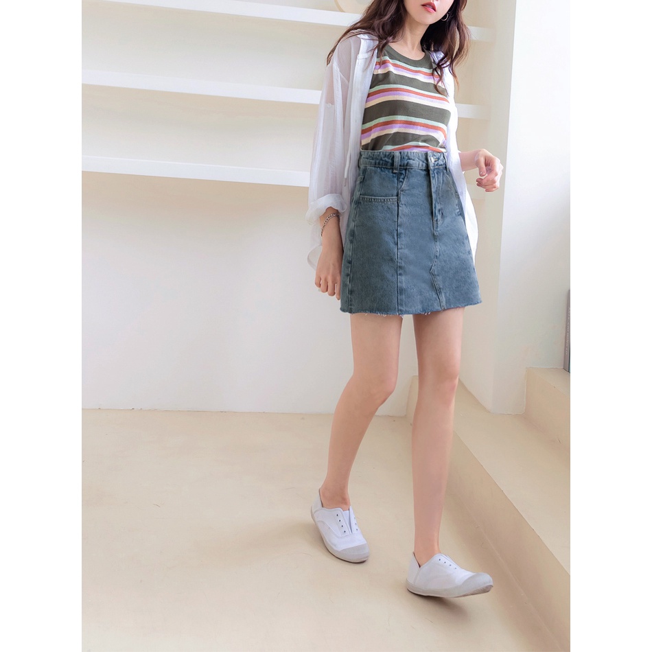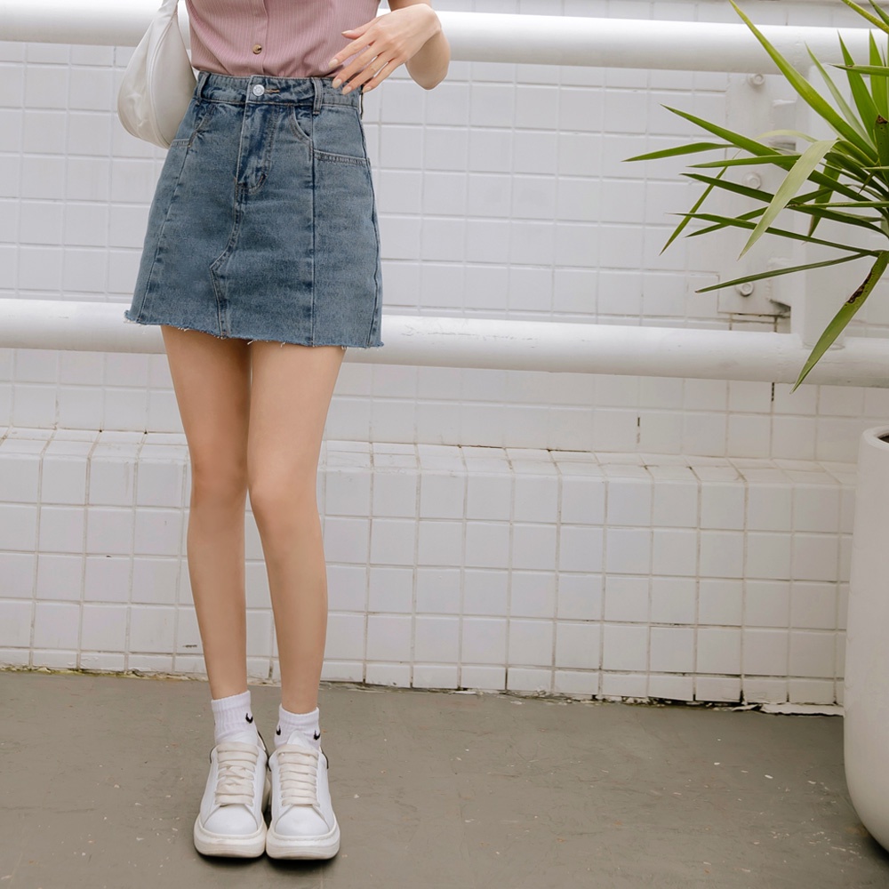 OB嚴選 高腰修身拼接感抽鬚A字牛仔短裙 《CA2556》大尺碼/現貨/女裝丹寧藍,M|丹寧藍,S|丹寧藍,3L|丹寧藍,2L|丹寧藍,XL|丹寧藍,LOB嚴選官方旗艦店