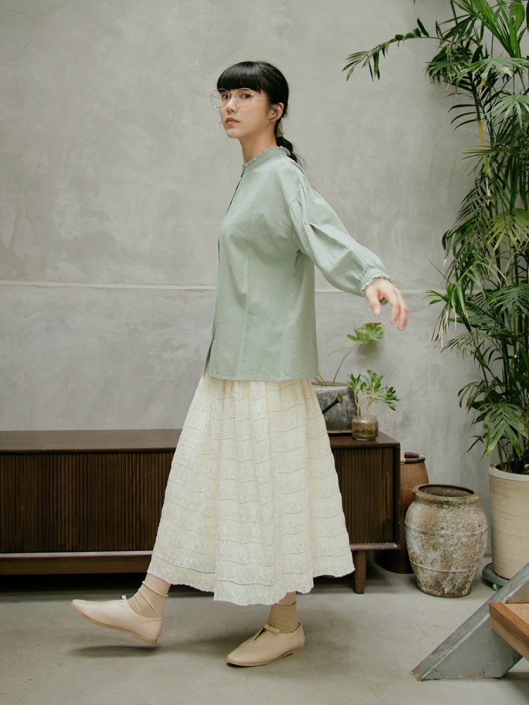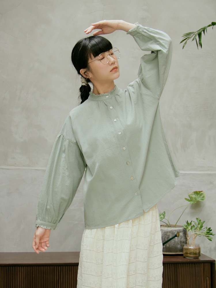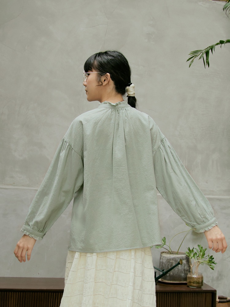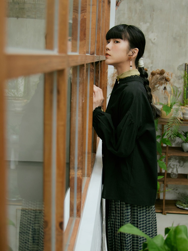 OB嚴選 寬鬆純棉拼接蕾絲立領貝殼排釦上衣 《AB18902》日系/大尺碼/現貨/女裝黑,F|黑,XL|黑,2L|黑,3L|湖綠,F|湖綠,XL|湖綠,2L|湖綠,3LT-shirtsOB嚴選官方旗艦店