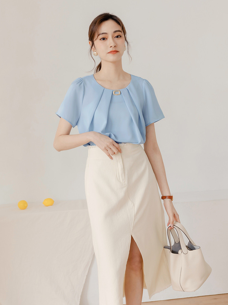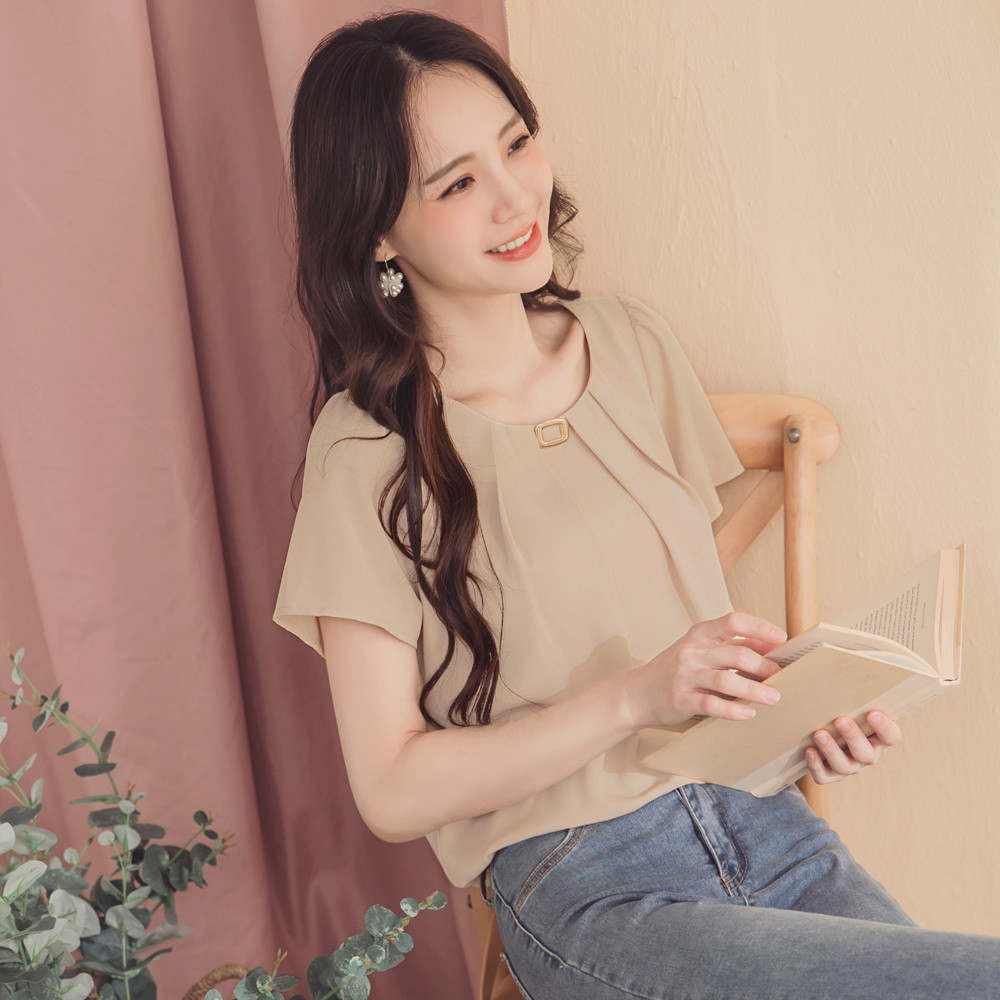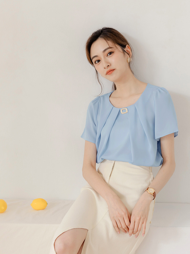 OB嚴選 不易皺質感方釦打褶造型領上衣 《AB12285》淺藍,S|淺藍,M|淺藍,L|淺藍,XL|淺藍,2L|淺藍,3L|杏,S|杏,M|杏,L|杏,XL|杏,2L|杏,3LT-shirtsOB嚴選官方旗艦店