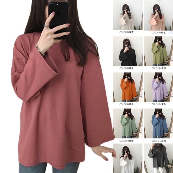 【ohi】大尺碼韓版基本款百搭喇叭袖寬鬆oversize長版長袖T恤 長袖上衣 素色顯瘦學生上衣(GTH358)杏色,M|黑色,M|紫色,XL|磚紅,L|磚紅,3XL|深灰,2XL|紫色,L|粉色,3XL|深灰,XL|白色,L|藍色,L|黑色,L|黑色,XL|綠色,XL|紫色,2XL|粉色,XL|白色,M|白色,2XL|杏色,L|杏色,2XL|藍色,XL|綠色,M|綠色,2XL|粉色,L|深灰,L|紫色,M|藍色,M|磚紅,2XL|杏色,3XL|藍色,3XL|深灰,M|綠色,L|綠色,3XL|磚紅,XL|杏色,XL|藍色,2XL|黑色,2XL|黑色,3XL|紫色,3XL|粉色,M|粉色,2XL|深灰,3XL|白色,XL|白色,3XL|磚紅,MSweatshirtsOHI衣著