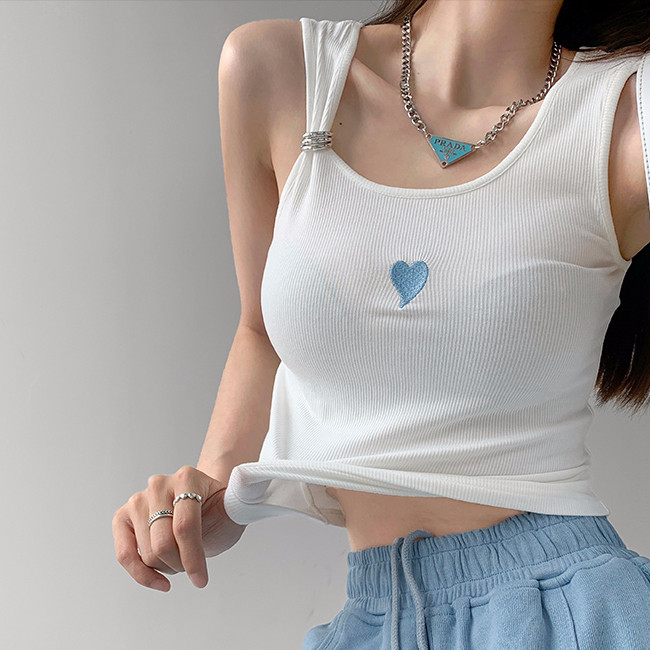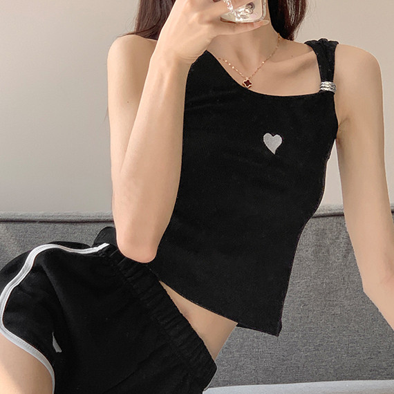 【ohi】刺繡愛心小可愛 背心 内搭外穿 性感短款上衣 T恤 外穿打底衫 吊帶上衣 短版背心 無袖上衣GVM8332