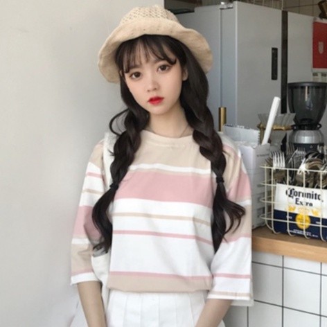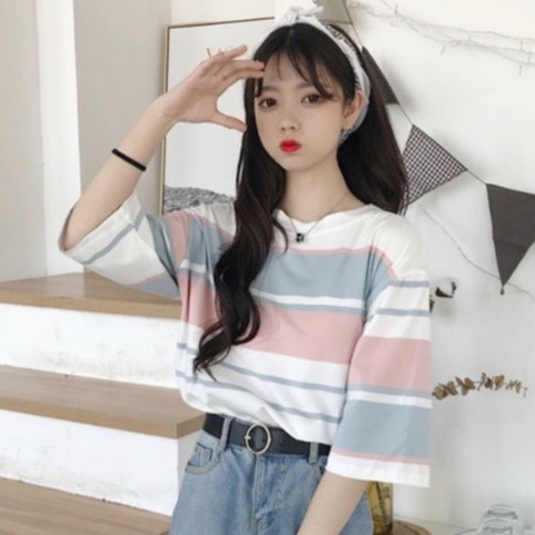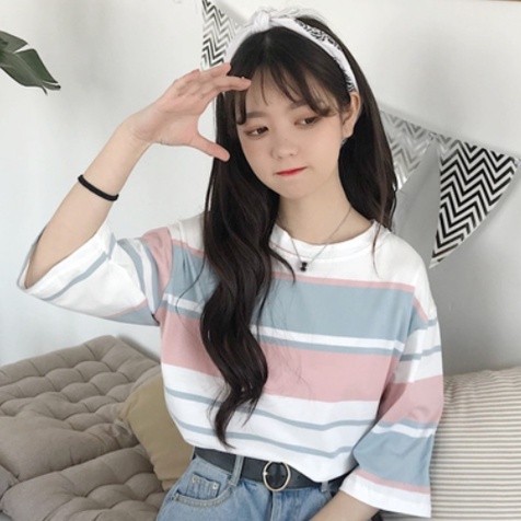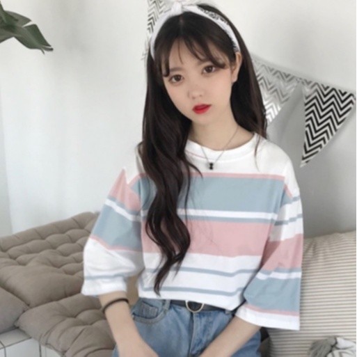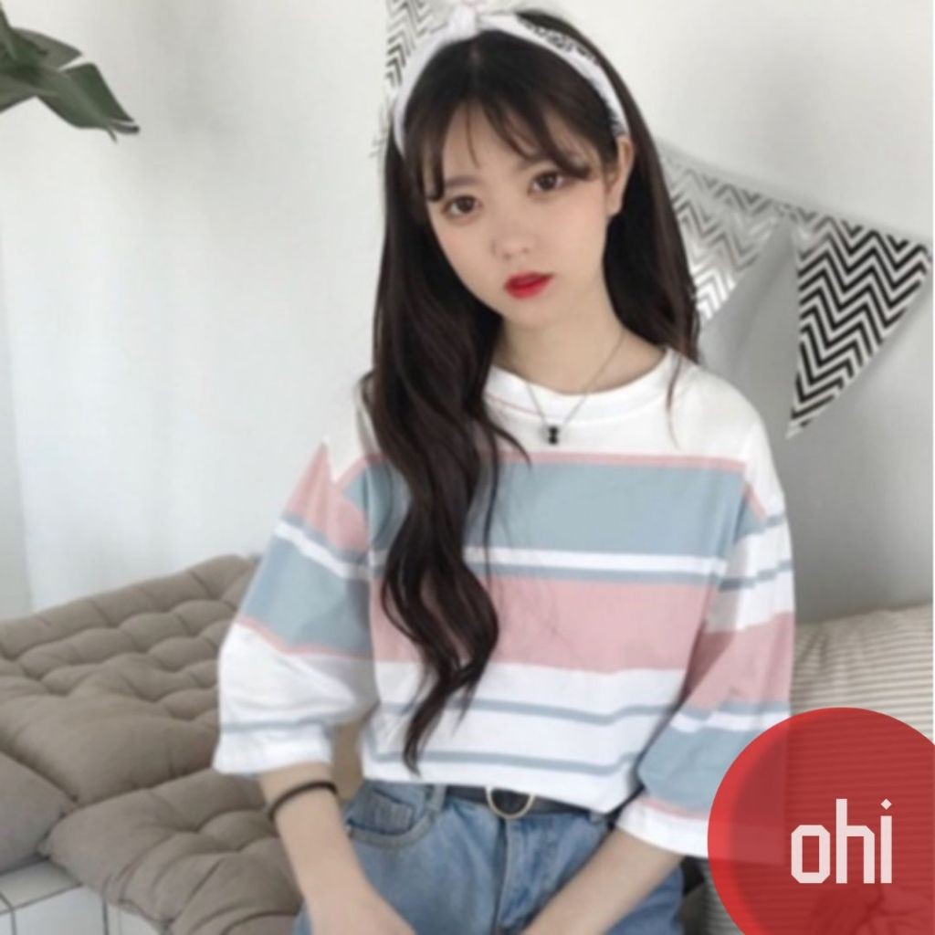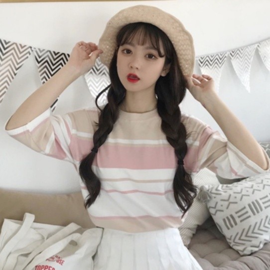 【ohi】『熱銷中』t恤女 短袖t恤 條紋上衣 學院風短袖 學生寬鬆上衣服女裝 半袖體恤衫 XGTCTW908天藍,L|天藍,XL|天藍,2XL|杏色,M|杏色,L|杏色,XL|杏色,2XL|天藍,MT-shirtsOHI衣著