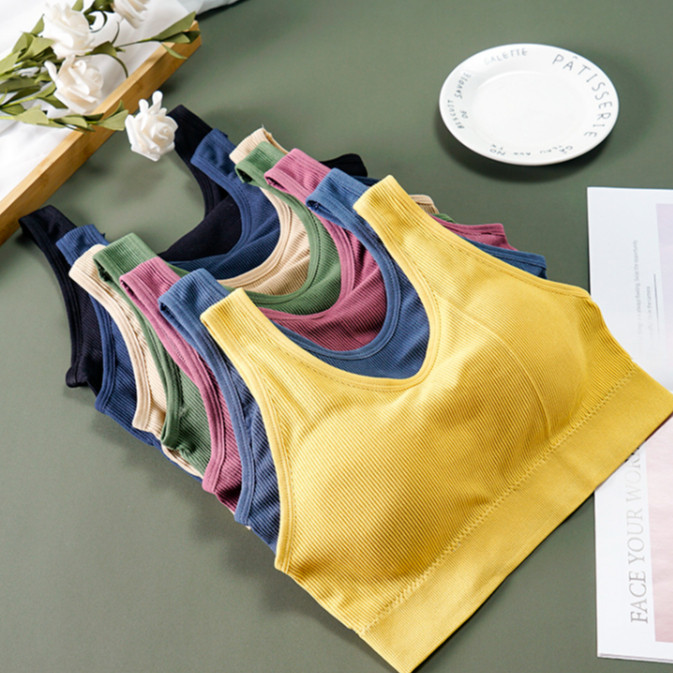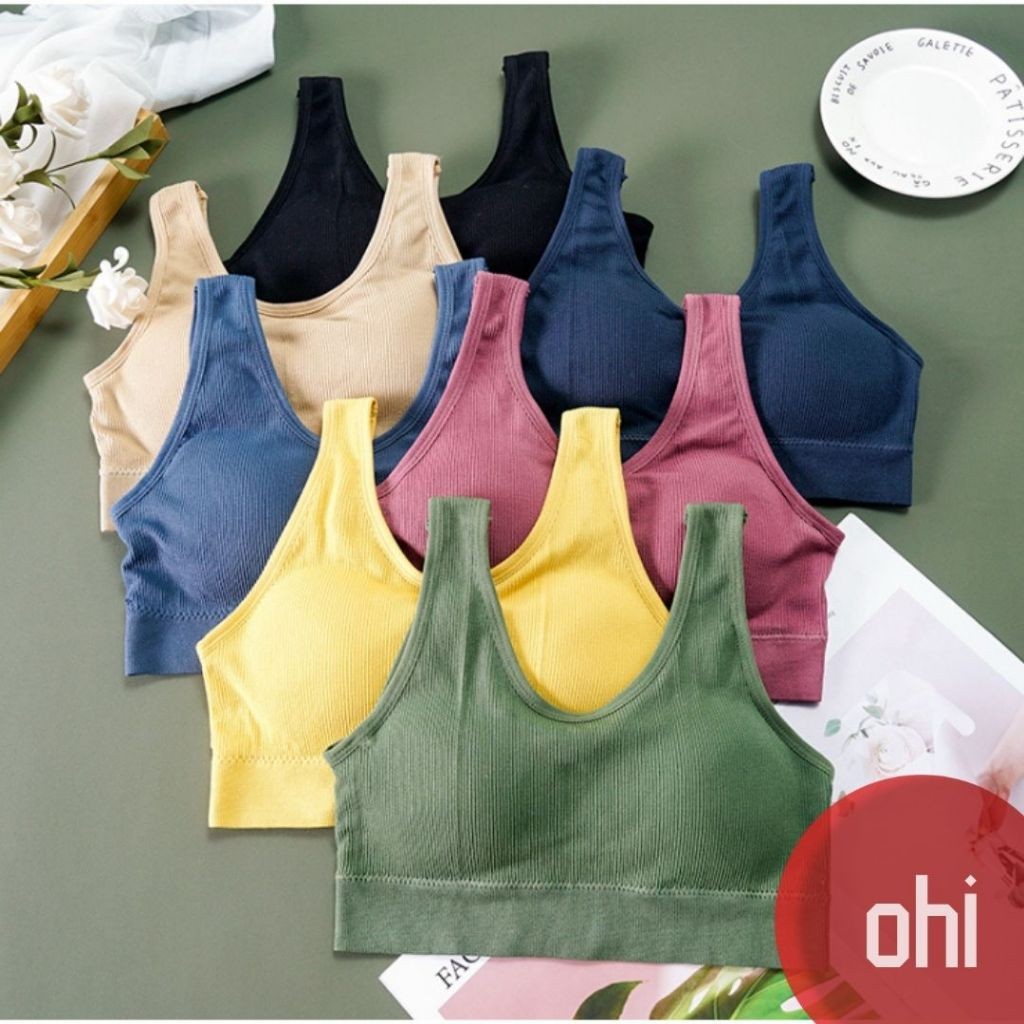 【ohi】韓版美背寬肩帶吊帶美背大V帶胸墊瑜伽運動防震背心式無鋼圈內衣學生內衣冰絲內衣小背心小可愛GVY3309寶藍|黑色|黃色|卡其|藍色|綠色|磚紅Tanks & CamisolesOHI衣著