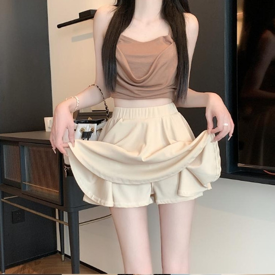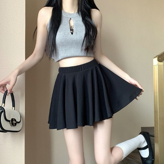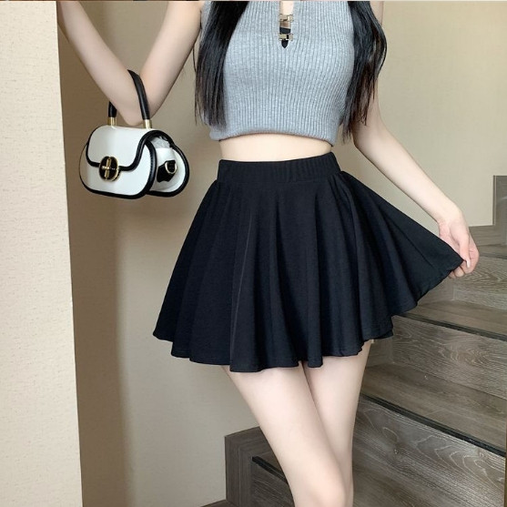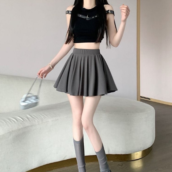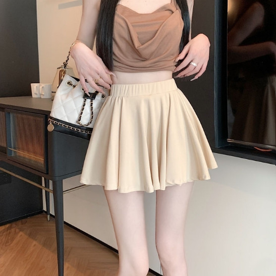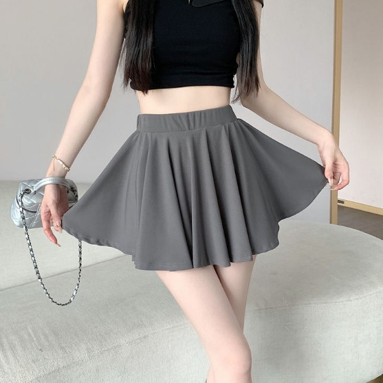 【ohi】設計感純色短裙 半身裙 防走光短裙 A字半身裙 高腰傘裙 女裝 短裙 自帶安全褲 GKY2207黑色,S|黑色,M|黑色,L|黑色,XL|灰色,S|灰色,M|灰色,L|灰色,XL|杏色,S|杏色,M|杏色,L|杏色,XLOHI衣著