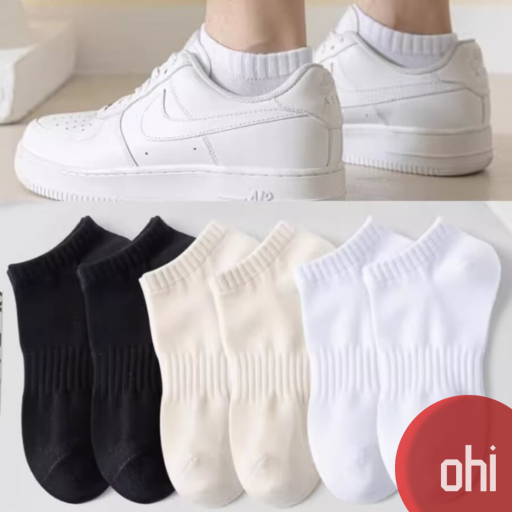 【ohi】百搭棉襪 男女短襪百搭 短襪 情侶款 男襪 女襪 船型短襪 中筒襪 棉襪 立體紋路百搭純色 AWC003黑色|白色|淺灰色|米色SocksOHI衣著