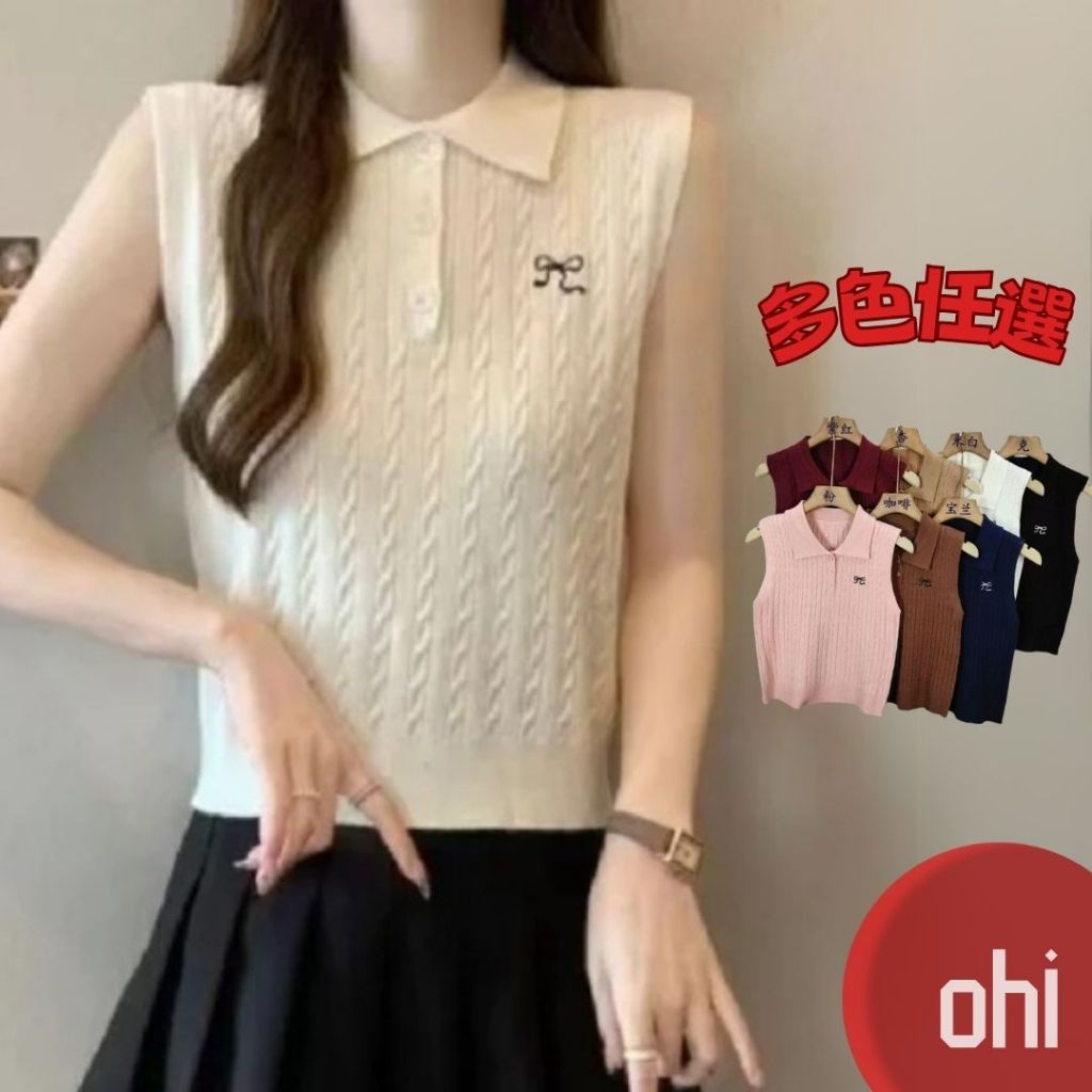 【ohi】POLO領針織上衣 馬甲無袖上衣 背心 女生上衣 針織上衣 女裝 顯瘦上衣 韓版上衣 GWH2222黑色,F碼(均碼40-55KG可穿)|白色,F碼(均碼40-55KG可穿)|杏色,F碼(均碼40-55KG可穿)|紫紅色,F碼(均碼40-55KG可穿)|寶藍色,F碼(均碼40-55KG可穿)|咖啡色,F碼(均碼40-55KG可穿)|粉色,F碼(均碼40-55KG可穿)OthersOHI衣著