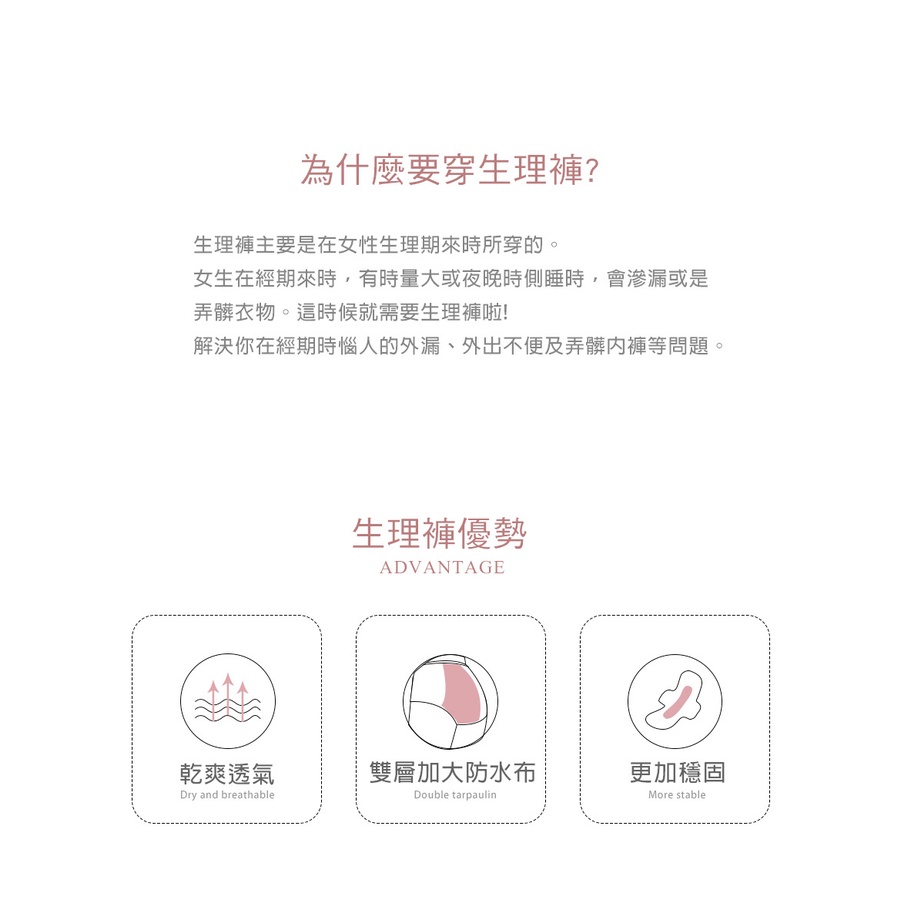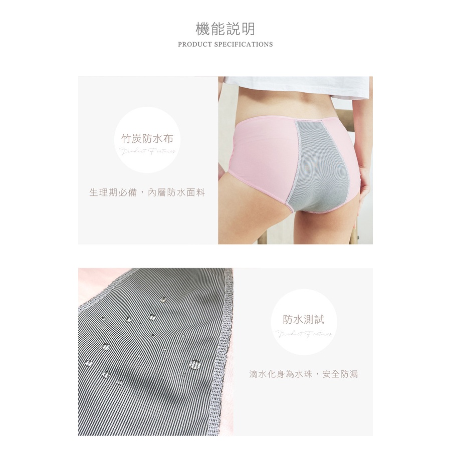 • Pink lady 台灣製生理褲 竹炭抗菌 防水布 棉質好感 生理期內褲 經期內褲 中低腰 防漏生理內褲 3901