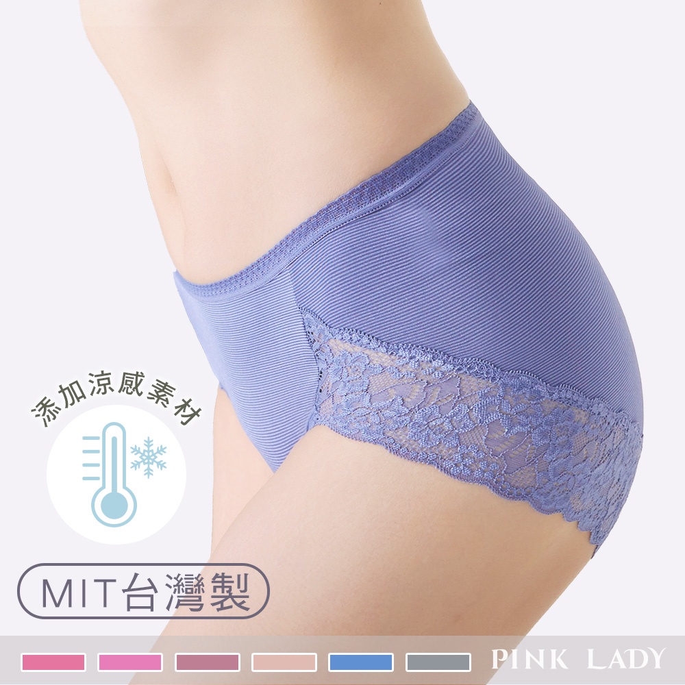 • Pink Lady 台灣製內褲 涼感紗材質 側邊無痕蕾絲 輕柔透氣 涼感內褲 中低腰內褲 舒適包臀內褲306
