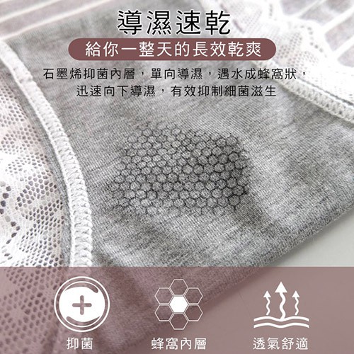 • Pink Lady 石墨烯內褲 抑菌導濕 無痕內褲 輕薄透氣 涼感內褲 褲邊蕾絲無痕 親膚抗菌 中高腰 包臀內褲5813