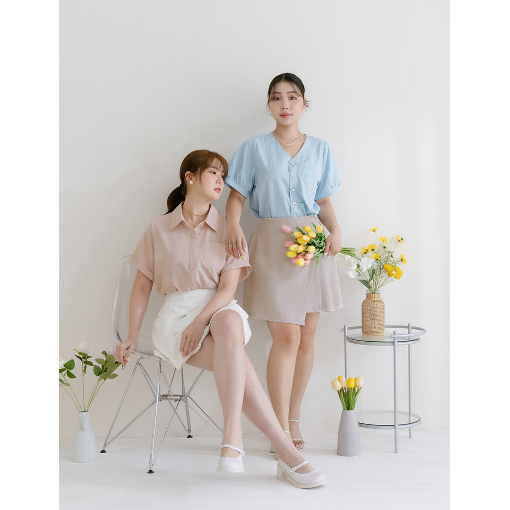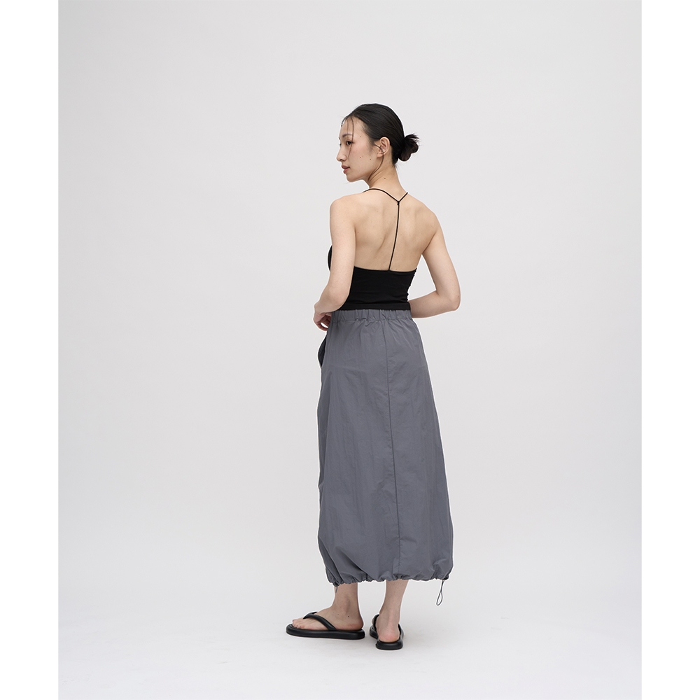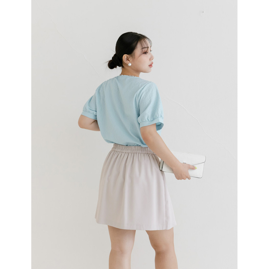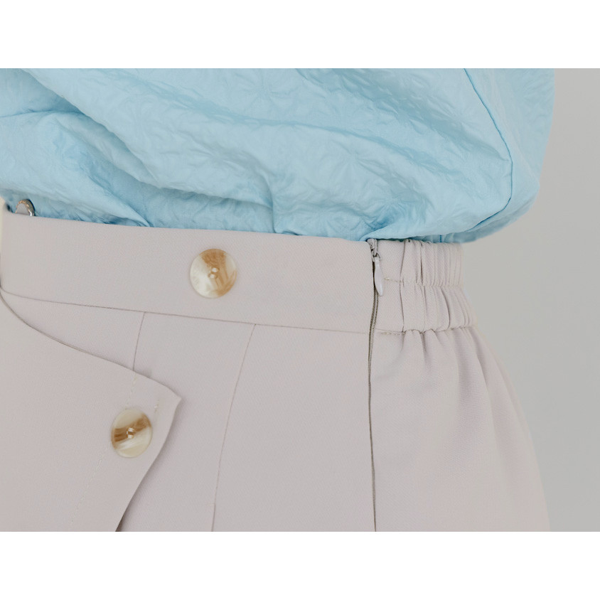 • 【PolyLulu】 MISS.韓系設計款不規則打褶後鬆緊短裙(附褲) 中大尺碼裙 灰杏色