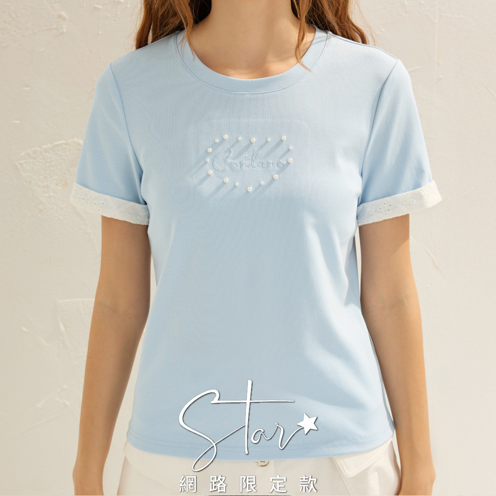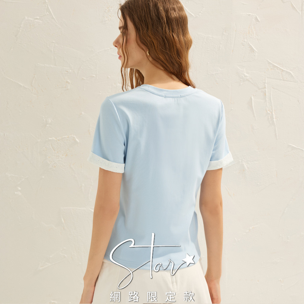 SO NICE 撞色拼接蕾絲愛心袖口棉質上衣|灰/淺藍|STAR|都會時尚女裝【6854F001】灰,36(S)|灰,38(M)|灰,40(L)|淺藍,36(S)|淺藍,38(M)|灰,34(XS)|灰,42(XL)|淺藍,34(XS)|淺藍,40(L)|淺藍,42(XL)T-shirtsSO NICE 官方旗艦店