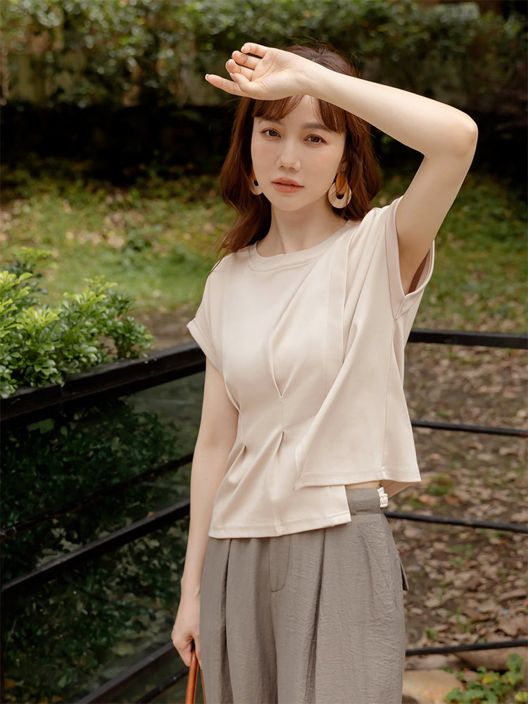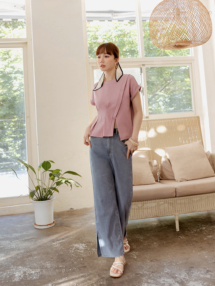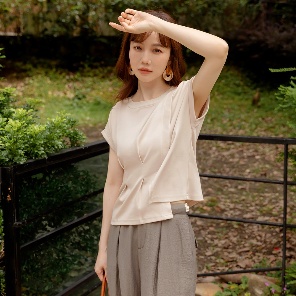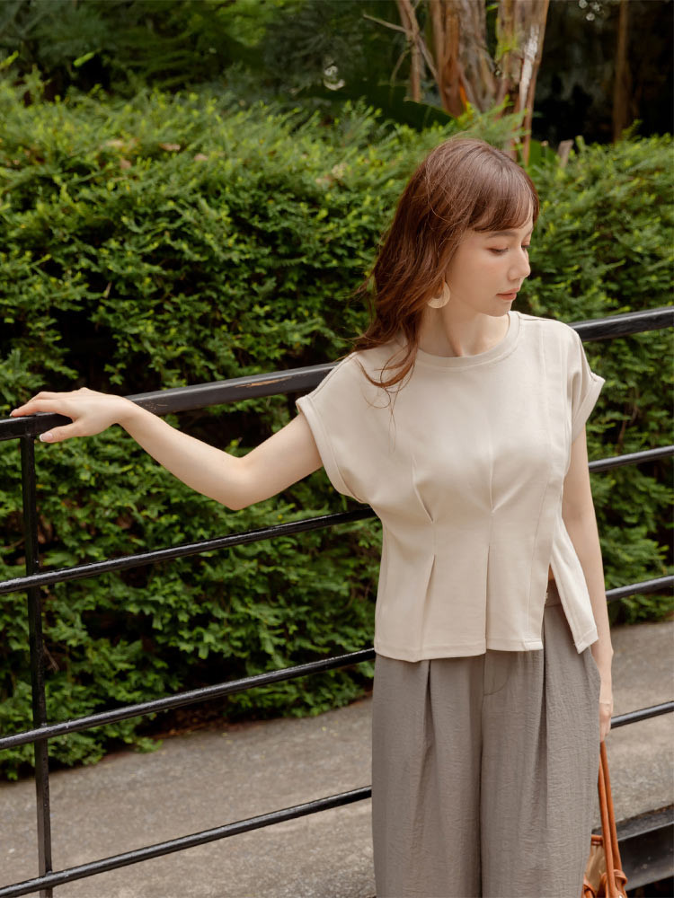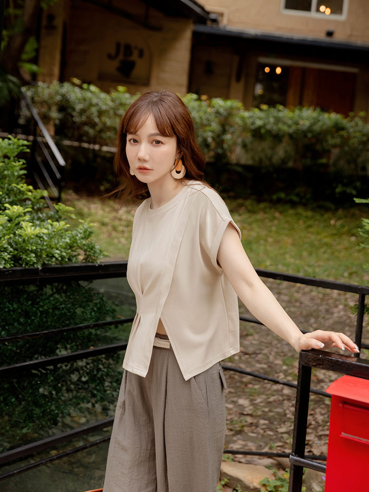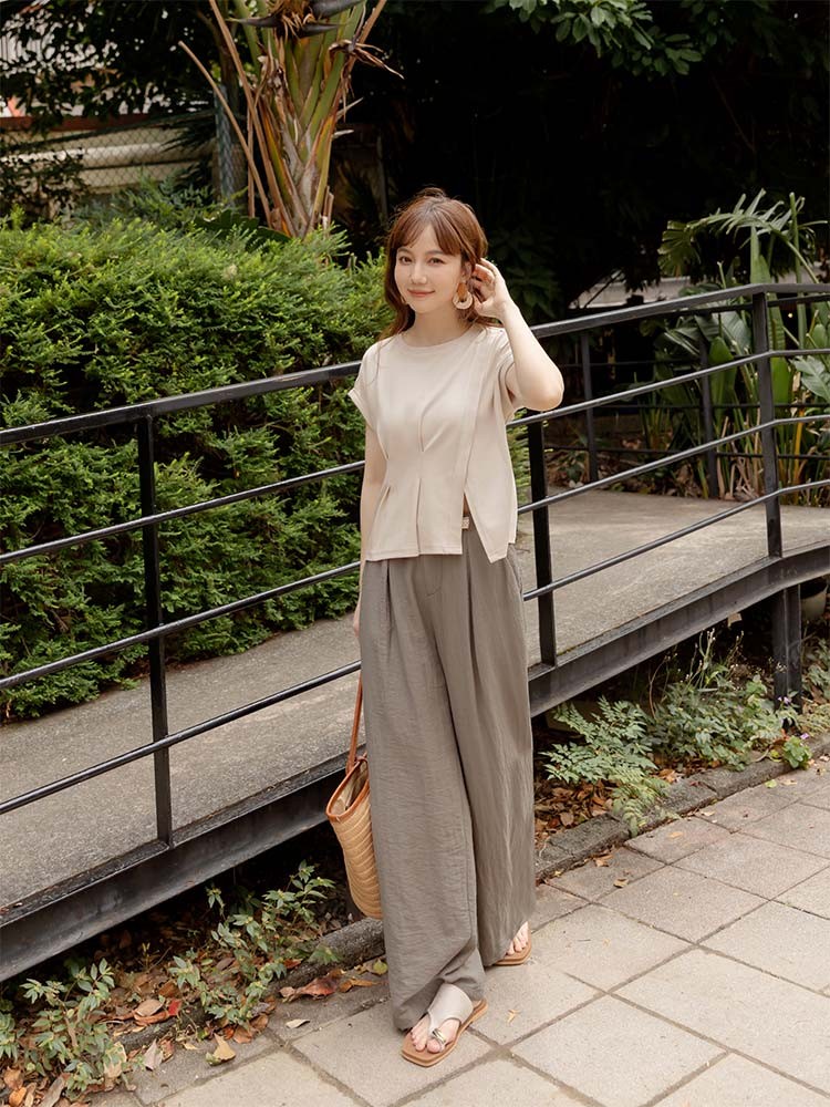 OB嚴選 親膚棉質腰打褶開衩短袖上衣 《AB20420》卡其杏,S|卡其杏,M|卡其杏,L|卡其杏,XL|卡其杏,2L|卡其杏,3L|粉紫,S|粉紫,M|粉紫,L|粉紫,XL|粉紫,2L|粉紫,3LT-shirtsOB嚴選官方旗艦店
