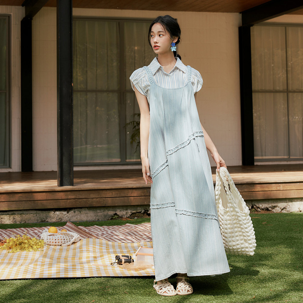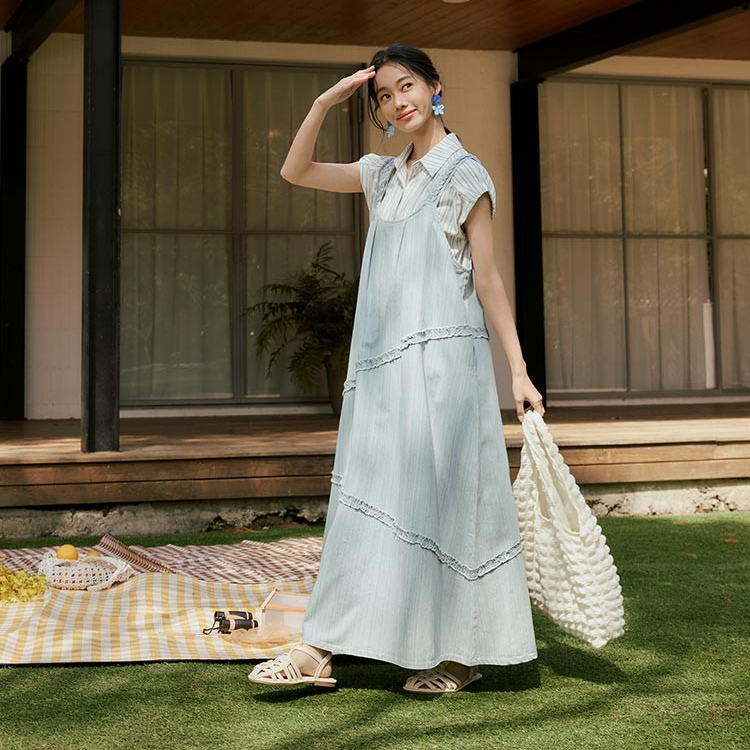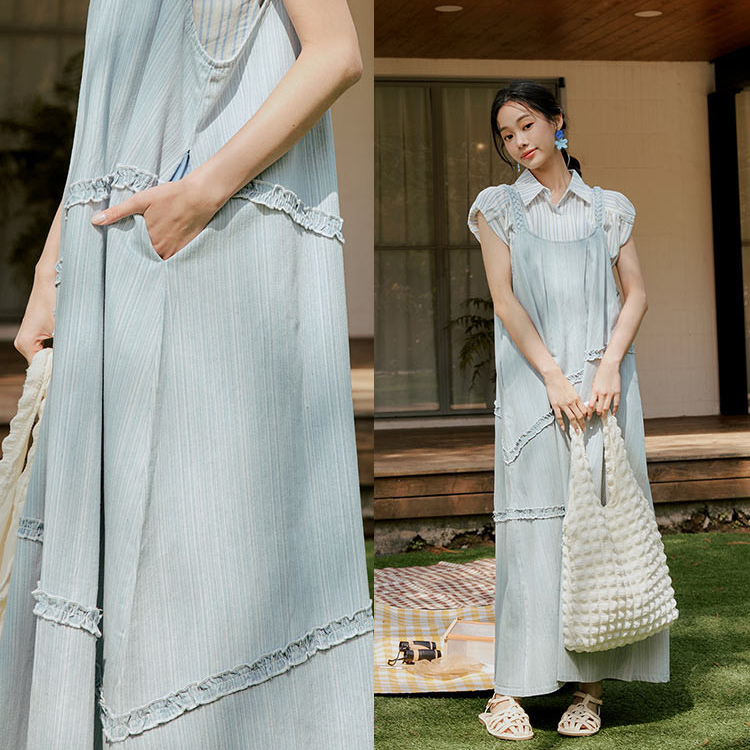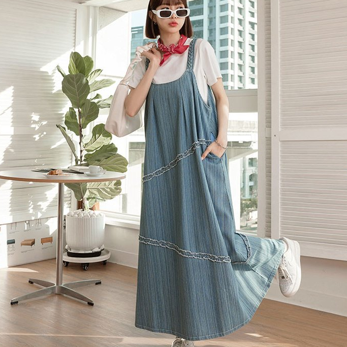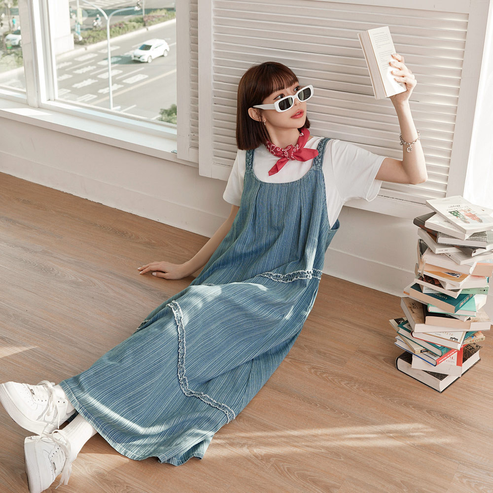 OB嚴選 編織肩帶滾邊造型傘襬牛仔洋裝 《DA10309》大尺碼/女裝/現貨淺水藍,F|淺水藍,XL|淺水藍,3L|藍,F|藍,XL|藍,3LOB嚴選官方旗艦店