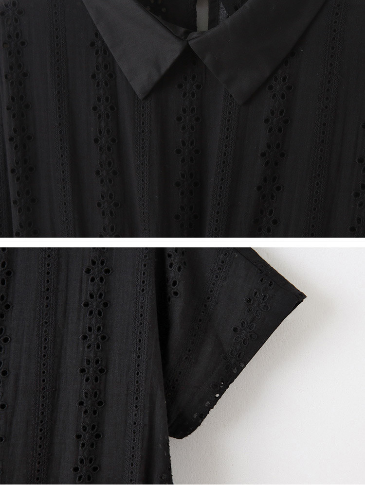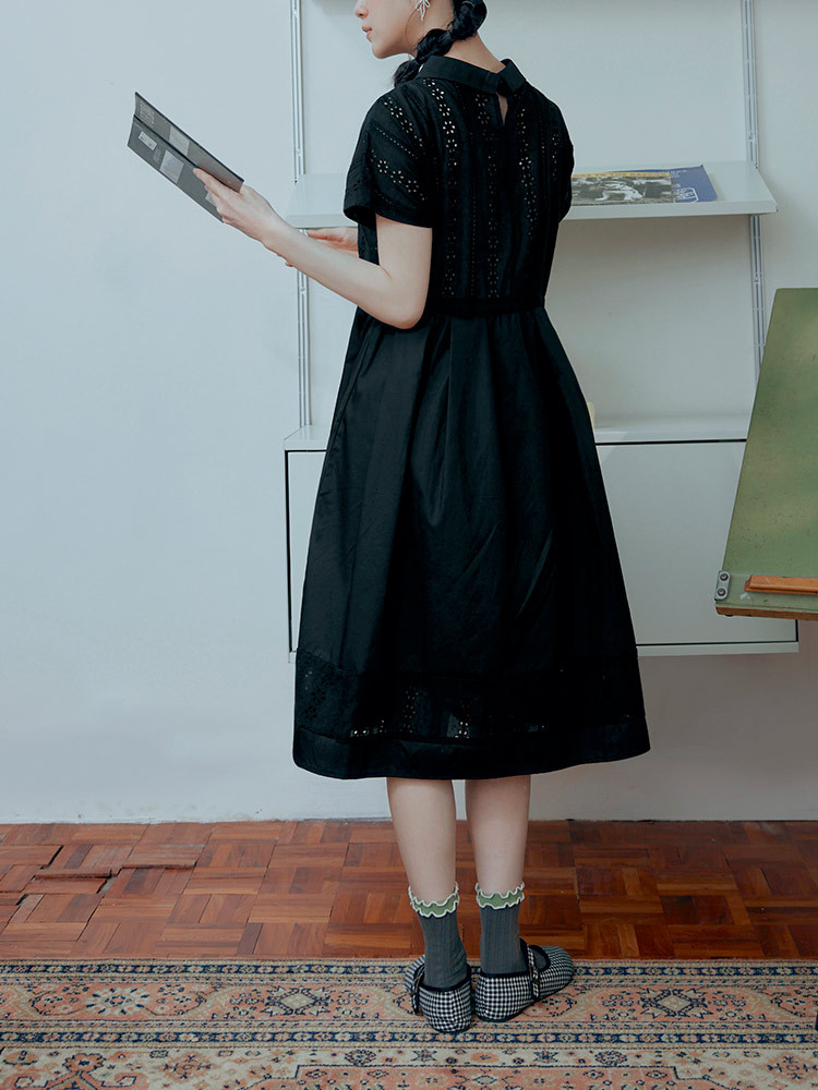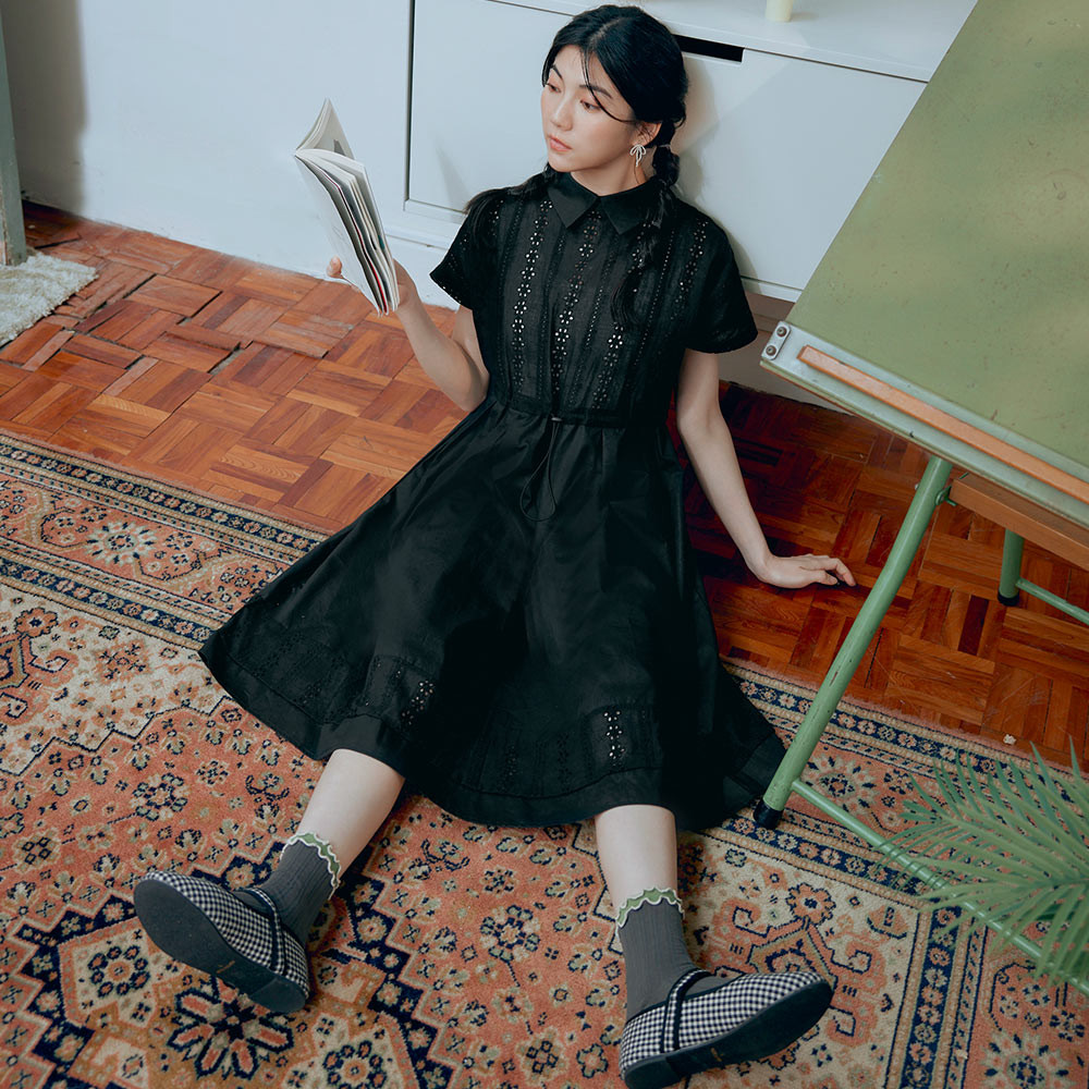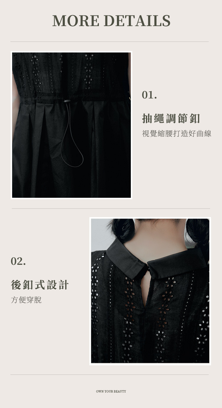 OB嚴選 日系純棉拼接蕾絲腰抽繩翻領洋裝 《DA10377》黑,S|黑,M|黑,L|黑,XL|黑,2L|黑,3LOB嚴選官方旗艦店