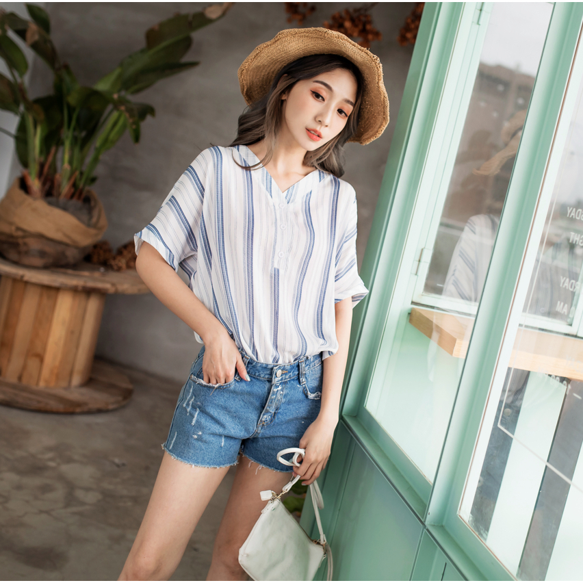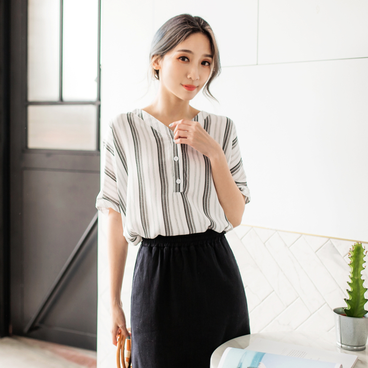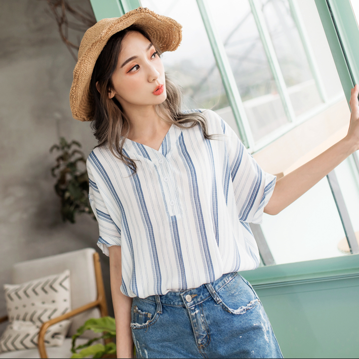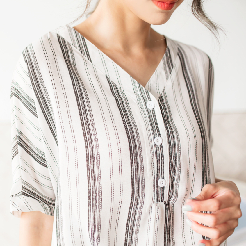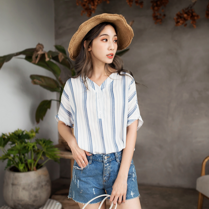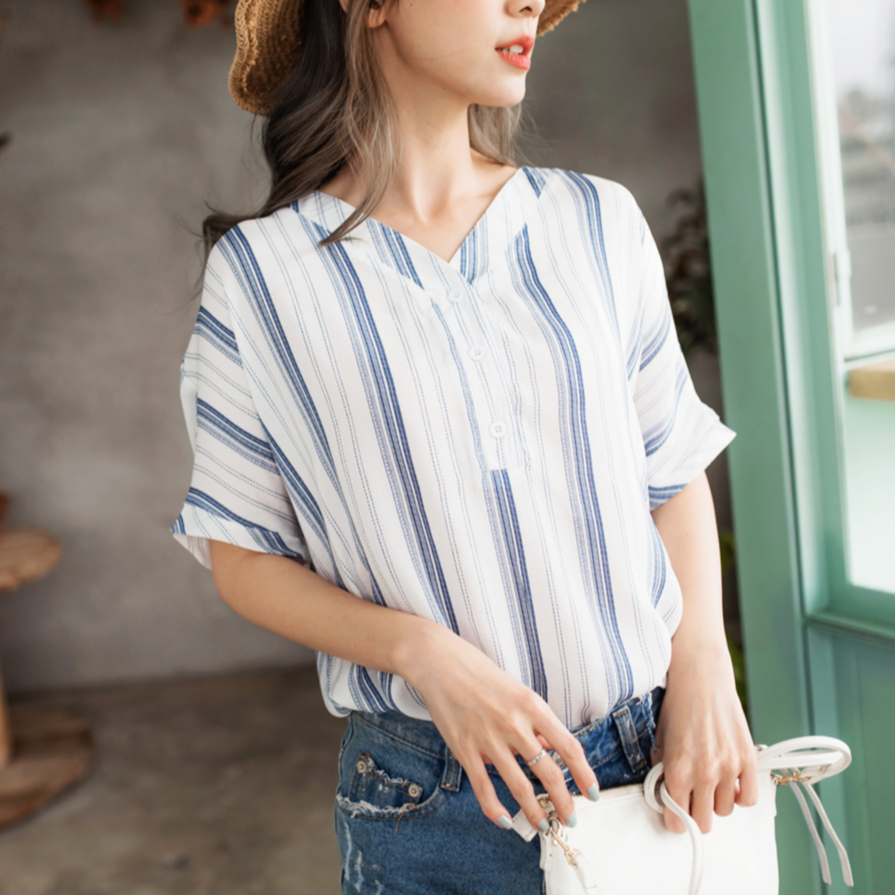 OB嚴選 不易皺V領排釦條紋短袖上衣 《AB9205》大尺碼/女裝/現貨藍條,M|黑條,3L|藍條,2L|黑條,S|黑條,XL|藍條,3L|藍條,XL|黑條,L|藍條,S|黑條,M|黑條,2L|藍條,L|棕條,S|棕條,M|棕條,L|棕條,XL|棕條,2L|棕條,3LShirts & BlousesOB嚴選官方旗艦店