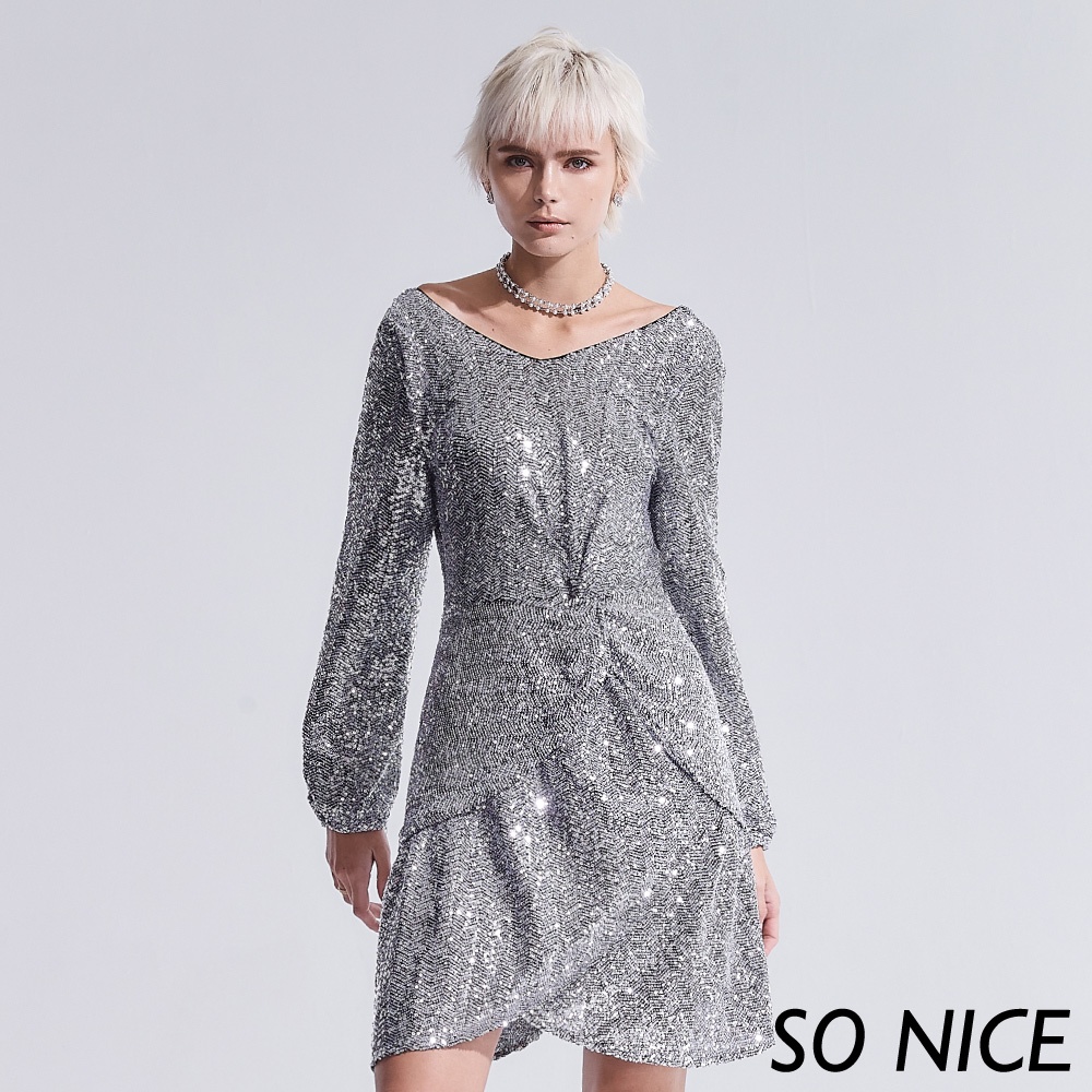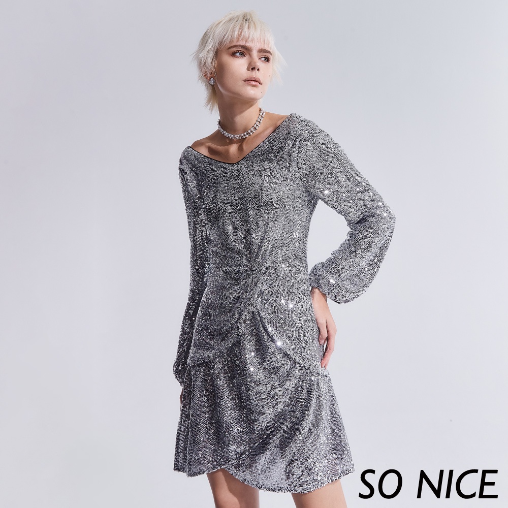 SO NICE【特惠】刺繡亮片性感露背洋裝|都會時尚女裝 【25344003】銀,36(S)|銀,38(M)|銀,40(L)|銀,34(XS)SO NICE 官方旗艦店