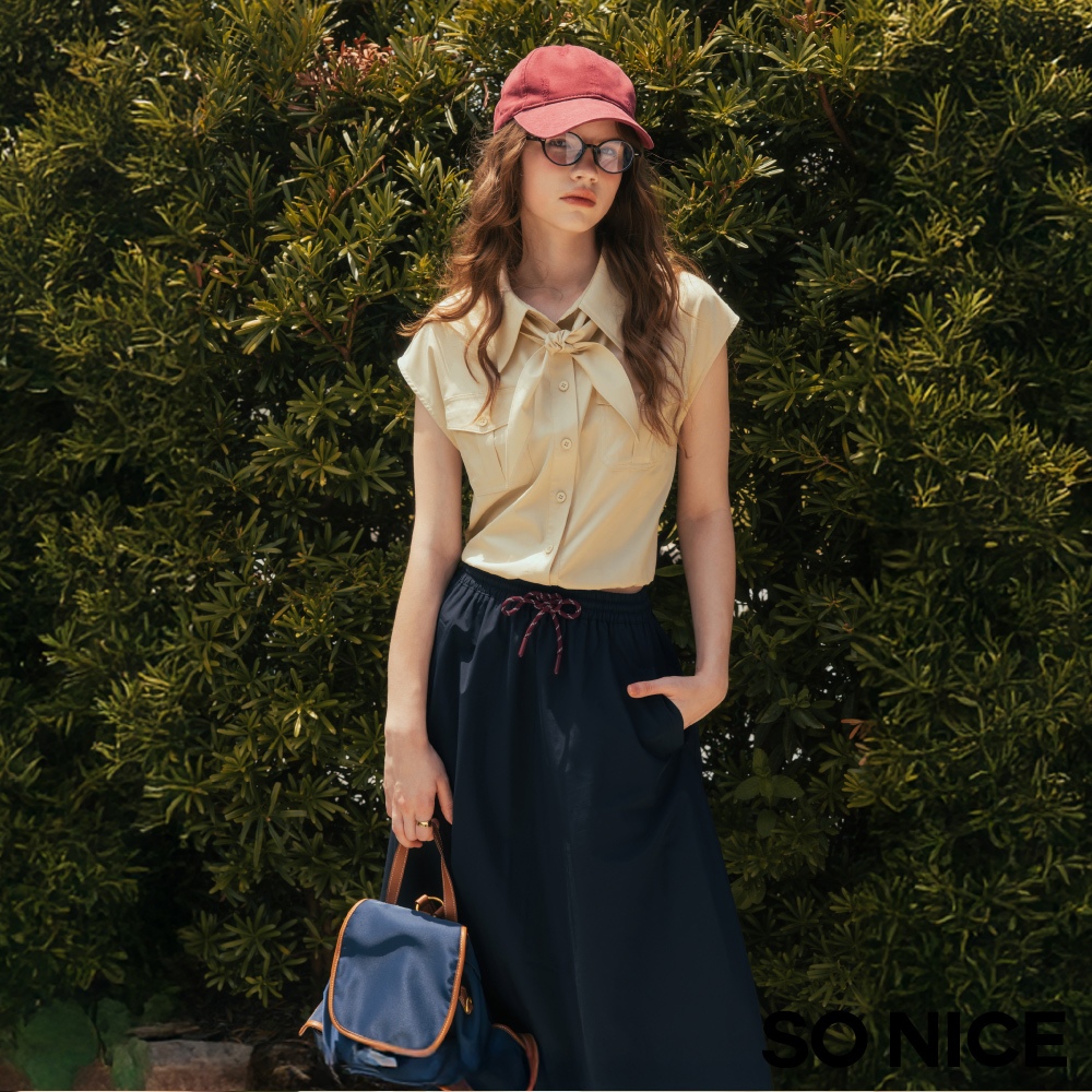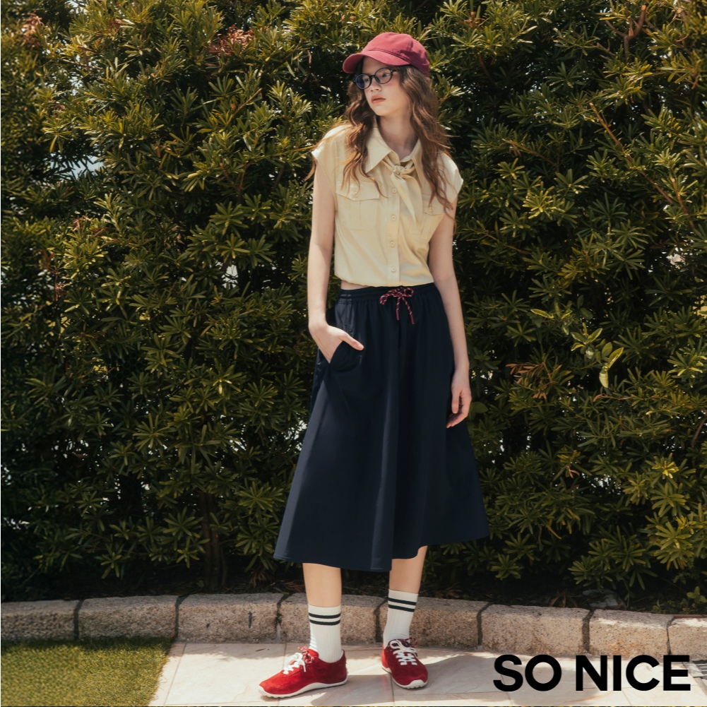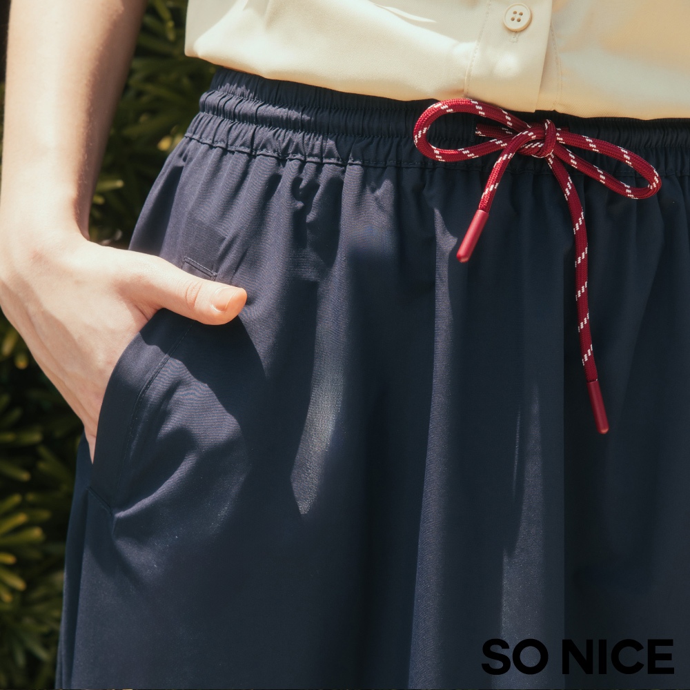 SO NICE MIU系學院運動風抽繩彈力腰頭不易皺防潑水風衣長裙|都會時尚女裝【58533023】深藍,38(M)|深藍,40(L)|深藍,34(XS)|深藍,36(S)SO NICE 官方旗艦店