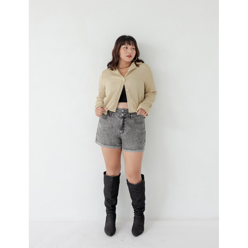 【PolyLulu】 MUA!高腰收腹抽鬚牛仔修身短褲 中大尺碼褲子藍色,3XL|藍色,4XL|灰色,L|灰色,2XL|灰色,3XL|灰色,4XL|藍色,L|藍色,XL|灰色,XL|藍色,2XLPOLY LULU丨BEAUTY HAS NO SIZE 中大尺碼女裝
