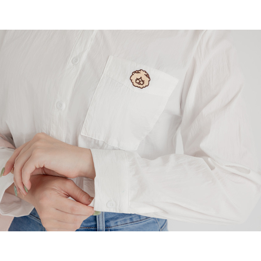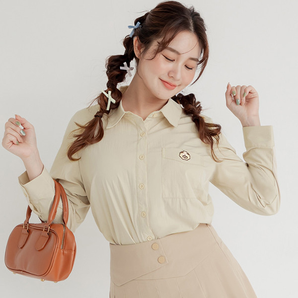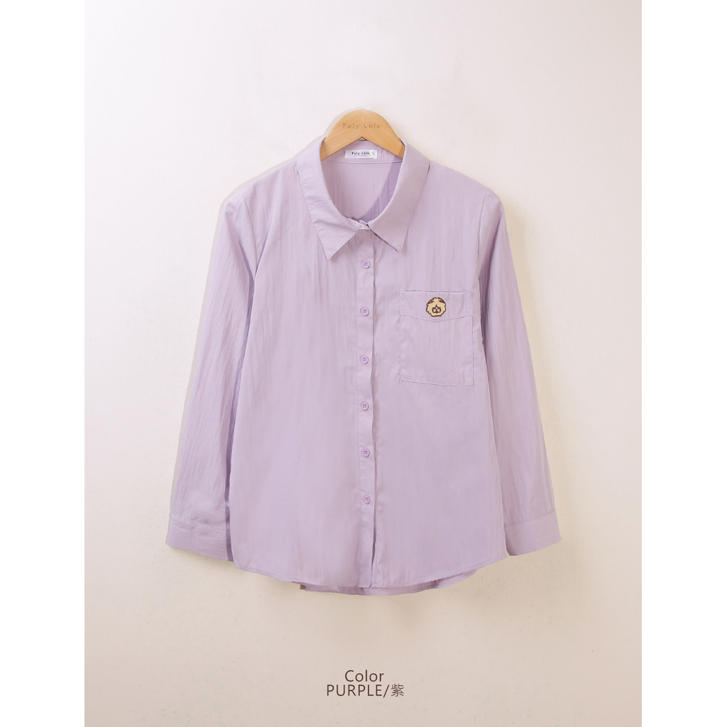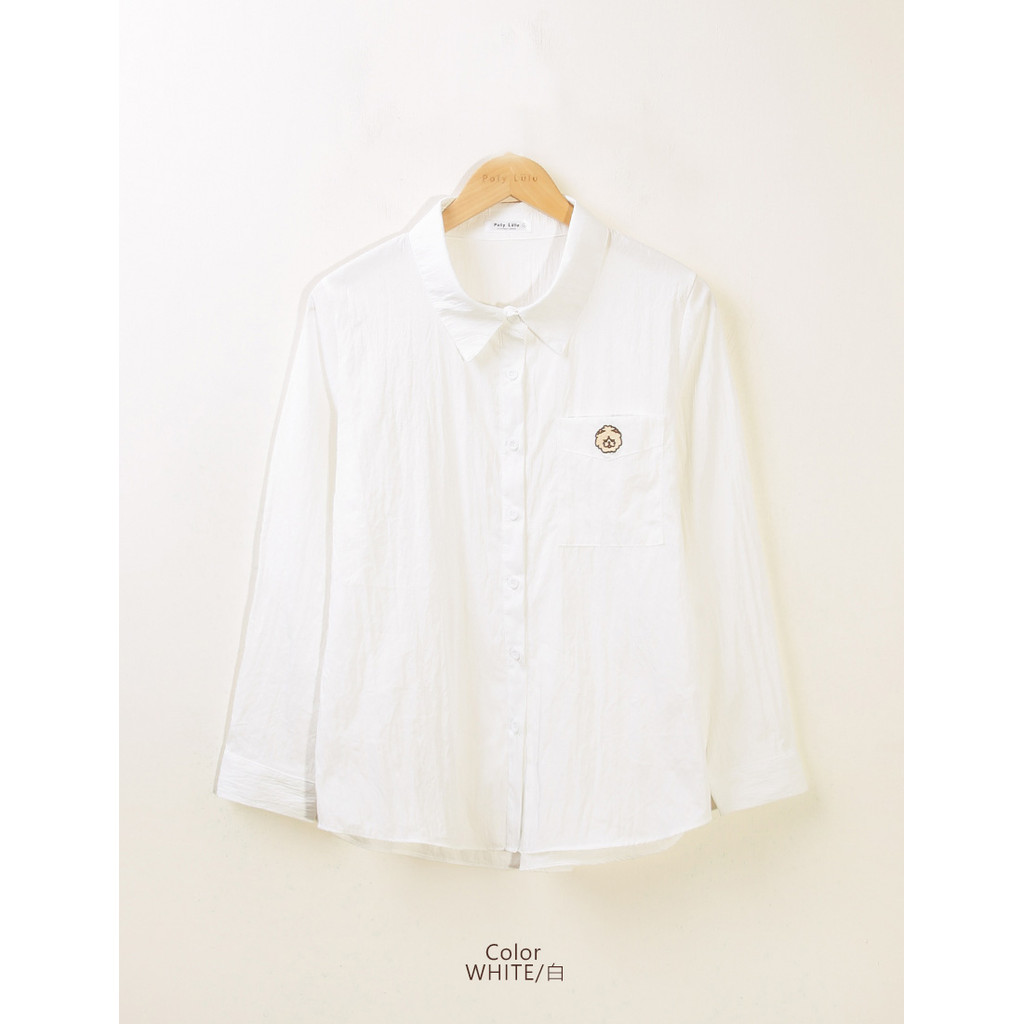 【PolyLulu】 俏皮女友皺皺鬆獅犬刺繡長袖襯衫 中大尺碼上衣卡其色,2XL|卡其色,3XL|白色,L|白色,XL|白色,2XL|紫色,L|紫色,XL|卡其色,L|卡其色,XL|白色,3XL|紫色,2XL|紫色,3XLShirts & BlousesPOLY LULU丨BEAUTY HAS NO SIZE 中大尺碼女裝