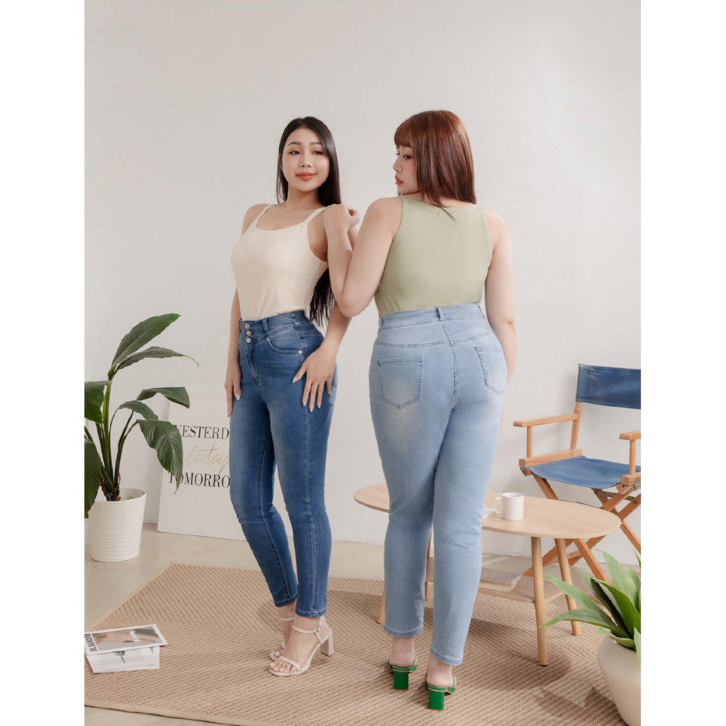 【PolyLulu】 科技涼感修身牛仔褲 中大尺碼褲子 中藍色3XL|4XL|L|XL|2XLPantsPOLY LULU丨BEAUTY HAS NO SIZE 中大尺碼女裝
