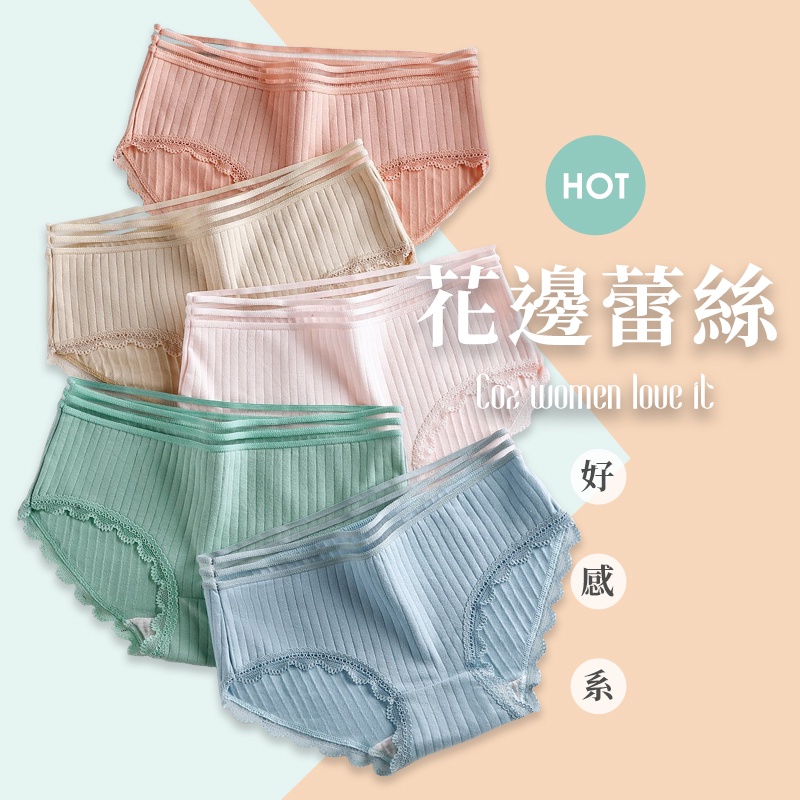 • 簡約可愛 純棉內褲 時尚設計款 B6093 台灣現貨 中腰 女生內褲 內褲女生 流行蕾絲 透氣內褲 學生內褲
