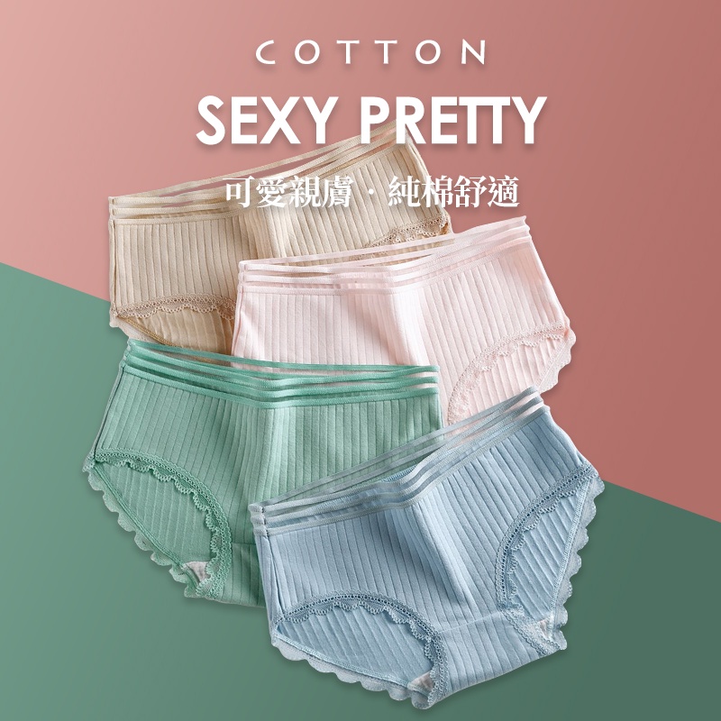 簡約可愛 純棉內褲 時尚設計款 B6093 台灣現貨 中腰 女生內褲 內褲女生 流行蕾絲 透氣內褲 學生內褲